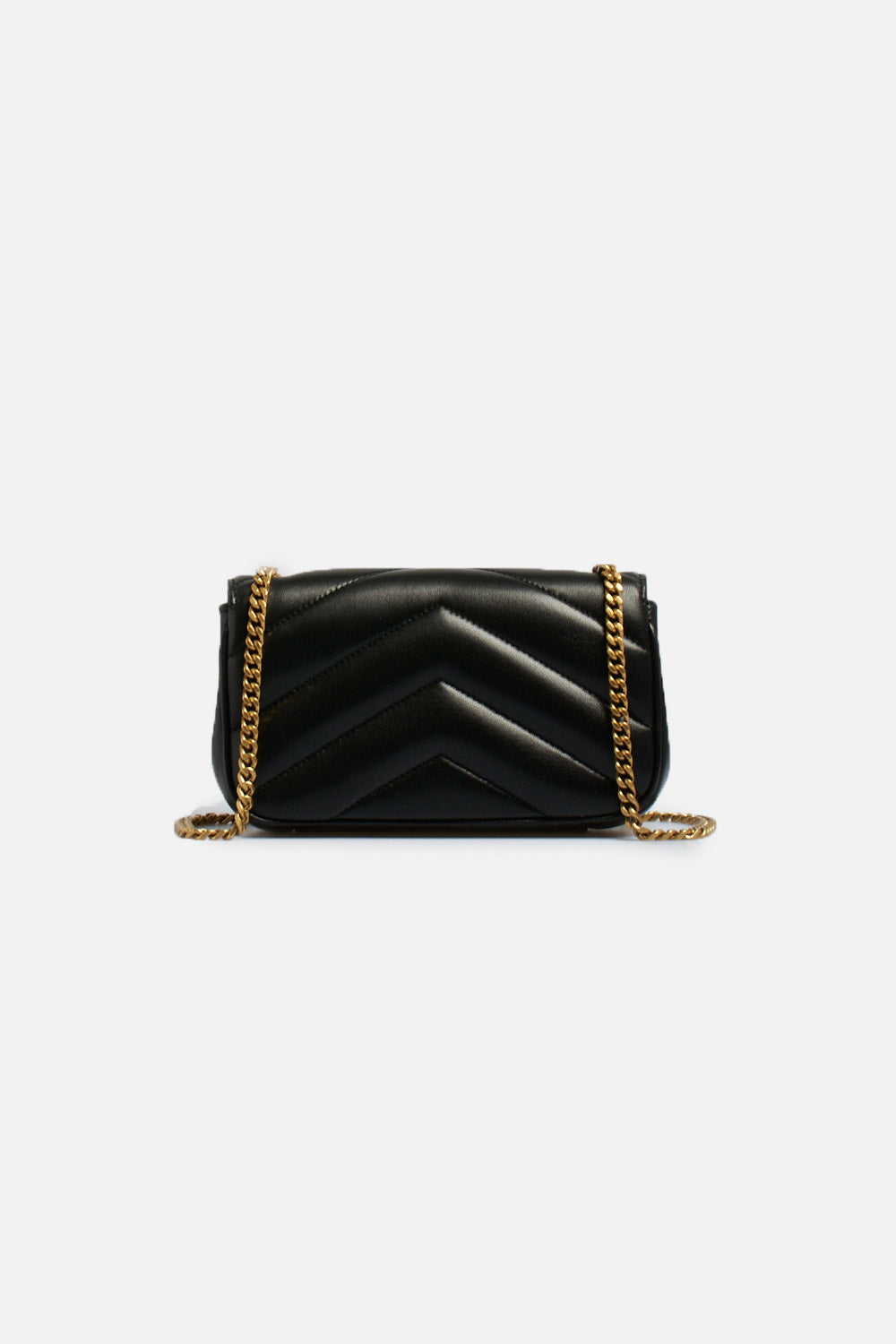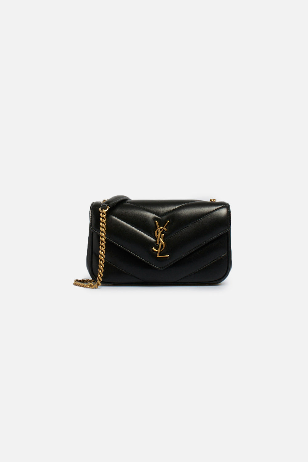 An icon of compact elegance, the Loulou mini bag by Saint Laurent is crafted from soft lambskin with chevron quilted stitching , the Maison's signature symbol. The chain shoulder strap with leather insert allows it to be carried comfortably on the shoulder or cross-body.