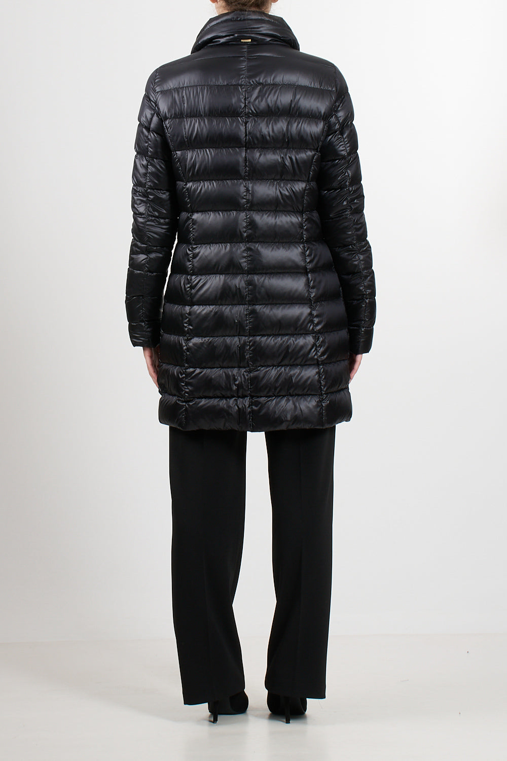 Long coat by Herno embellished with patch pockets with snap buttons, made of 200 g Ultralight nylon, injected padding in very fine goose down, slim fit, closure with maxi zip with double slider