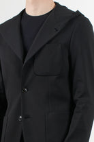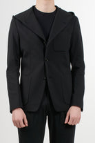 This Ungaro blazer represents the perfect balance between elegance and contemporary spirit. Crafted from stretch technical fabric, it features a clean line and a regular fit, with the addition of a hood that gives it a casual and modern touch. Perfect for versatile looks, to be worn both in the city and in more informal contexts.