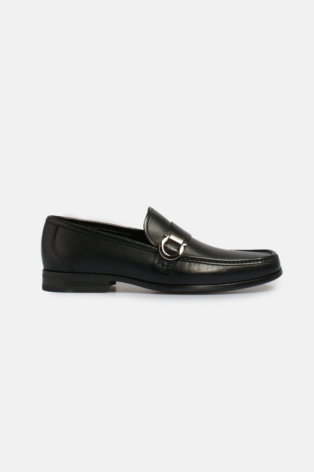Elegant Ferragamo moccasin with titanium finish Gancini placed on the side, rubber sole with visible stitching, Tubular workmanship on the rubber sole