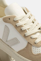 Veja V10 sneakers with ChromeFree leather, cowhide tanned without chrome. By simplifying the tanning process, the use of chemicals and energy is limited. Comfortable and lightweight sneakers, lettering logo on the front and back, contrasting logo on the side, flat laces closure on the front. Made in Brazil.