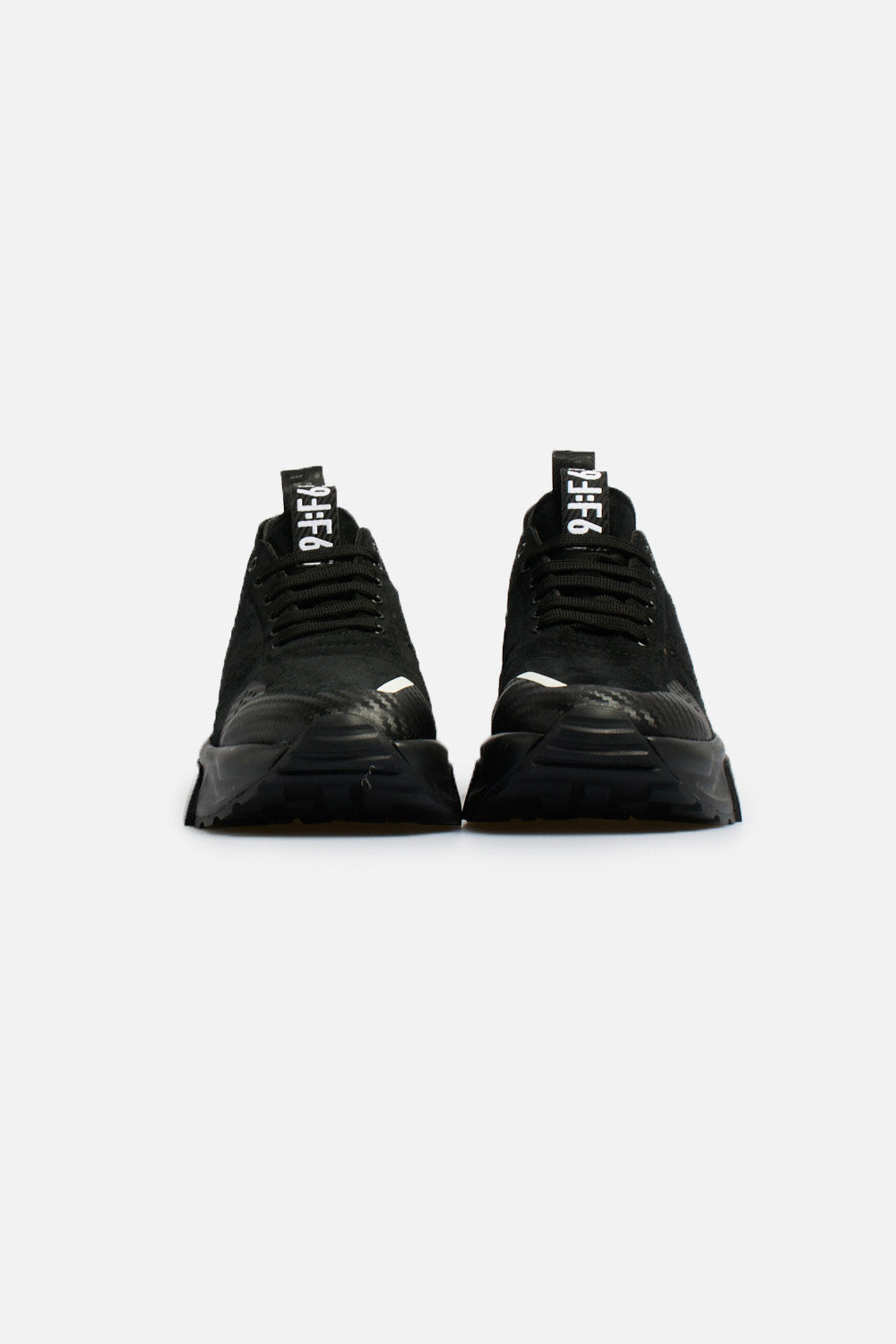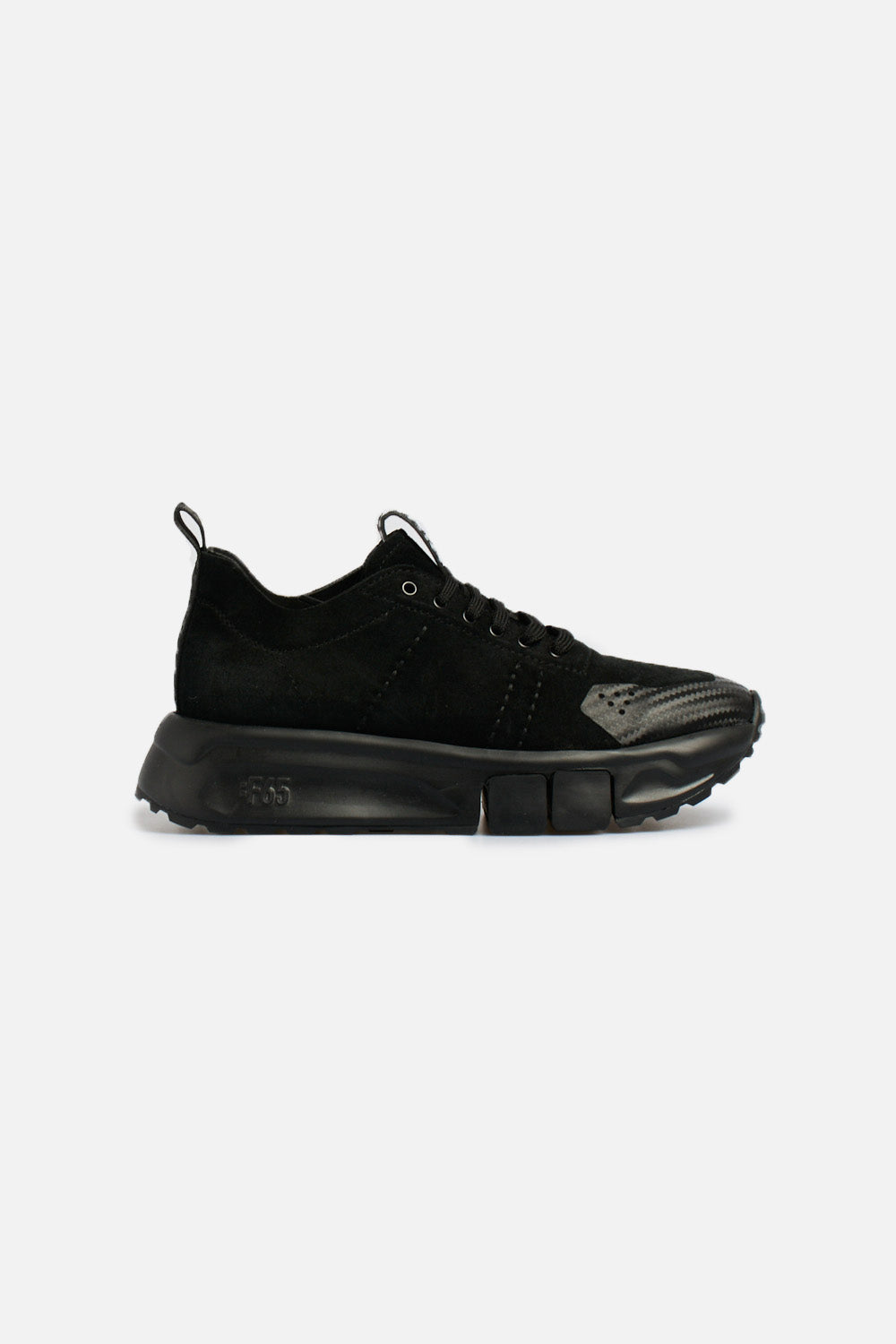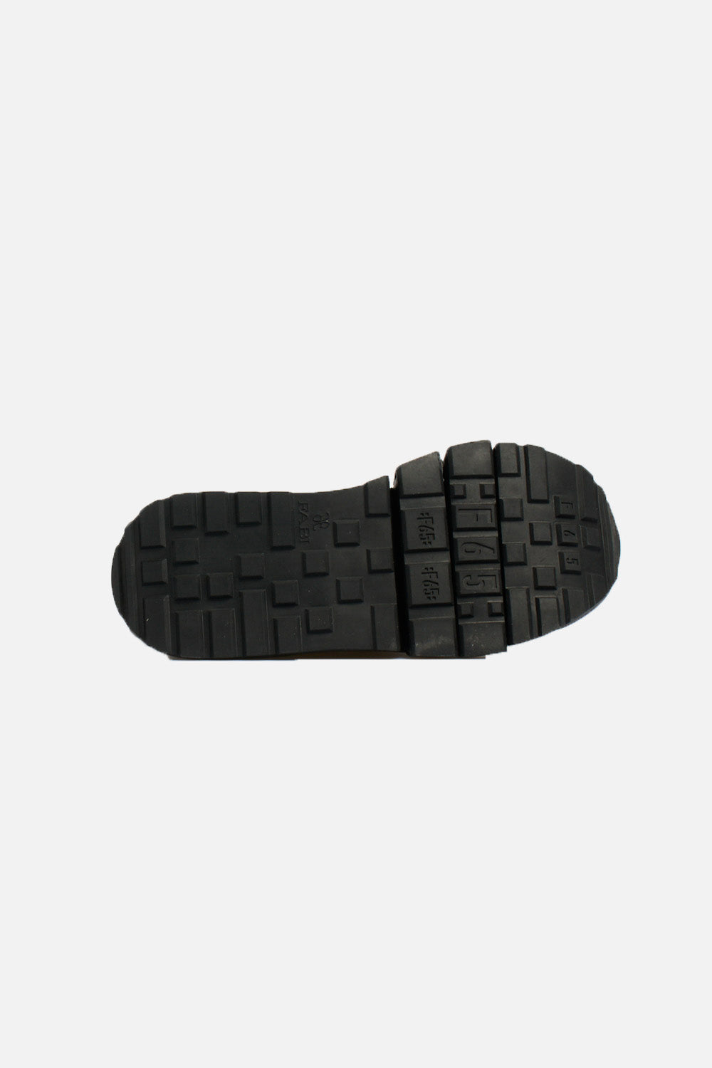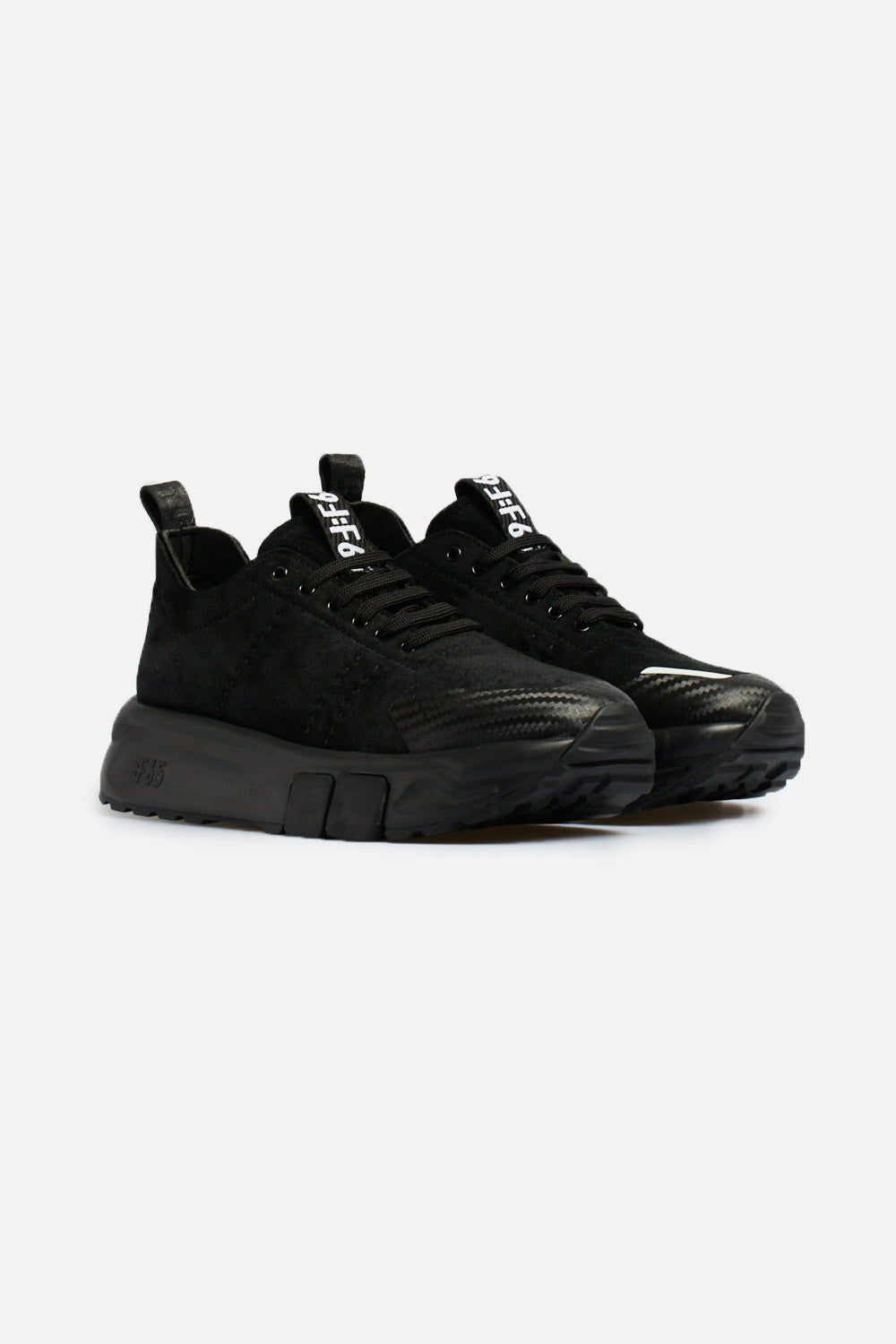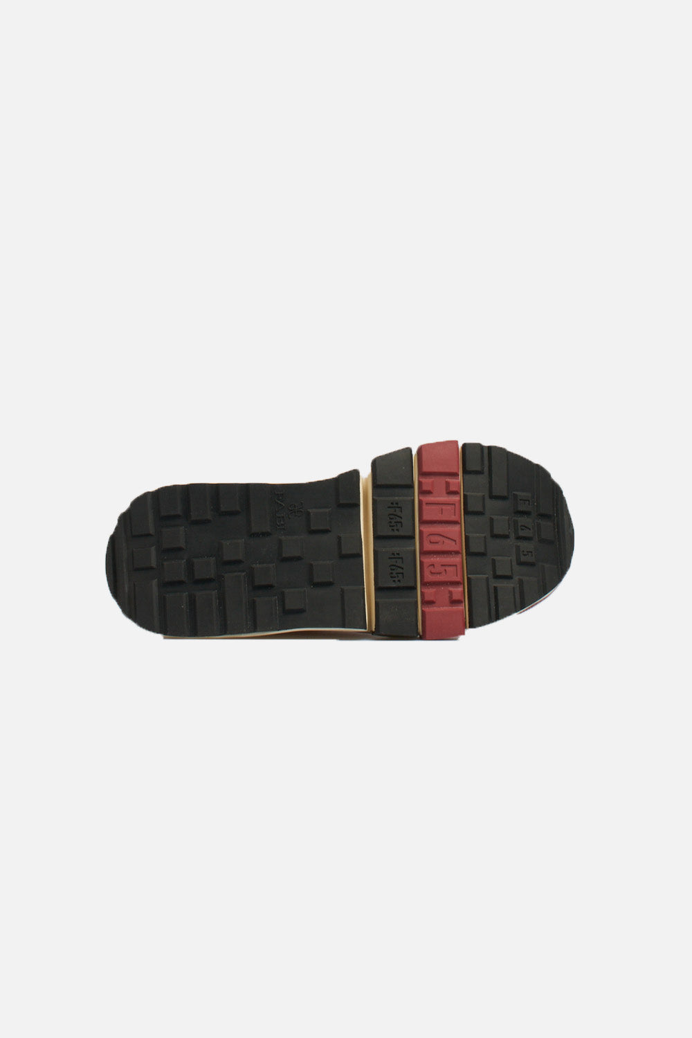 F65 sneakers, featuring a suede upper with contrasting shiny inserts on the toe. The oversized tongue with logo and technical details on the heel give it a dynamic, urban look. Rubber sole.