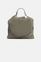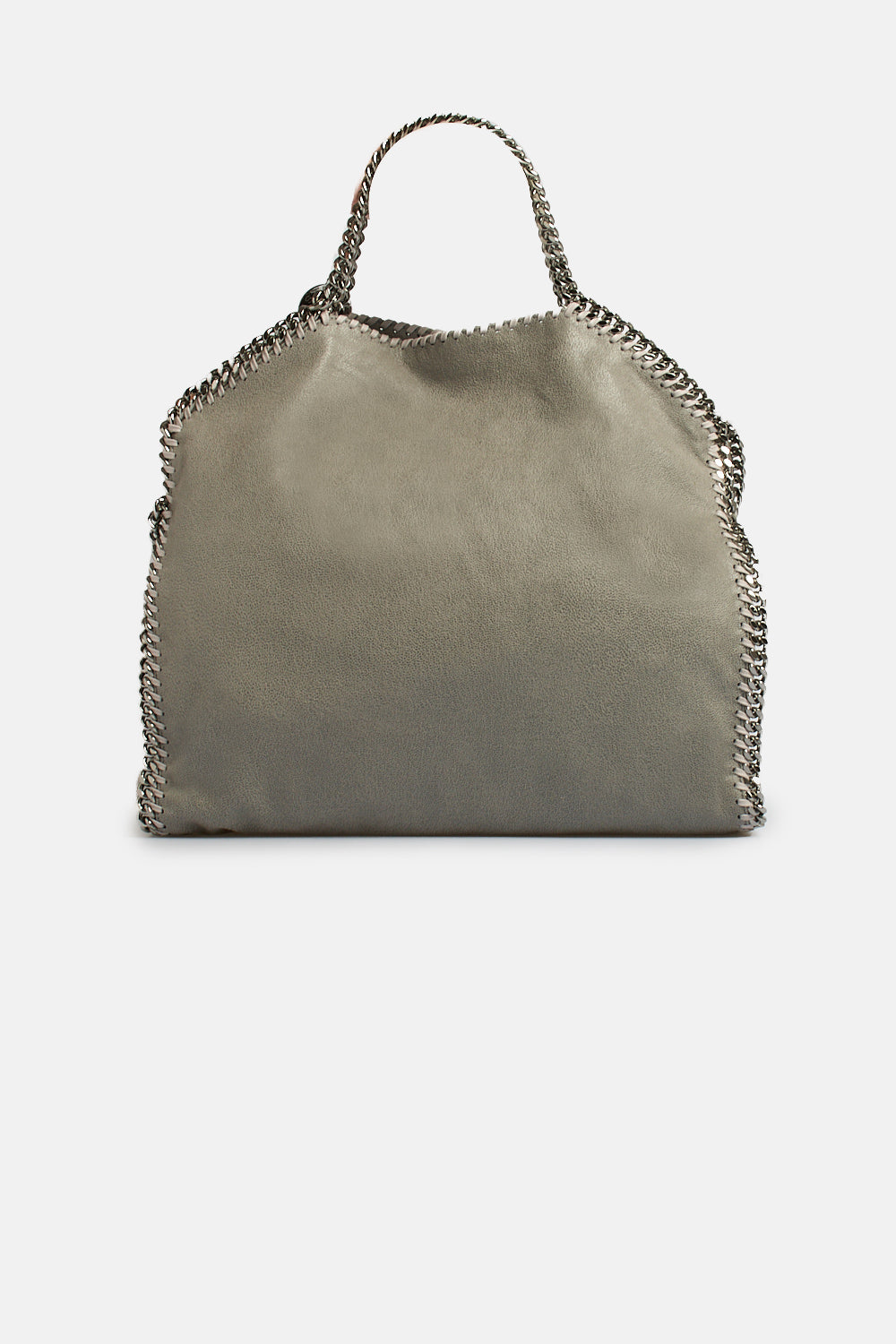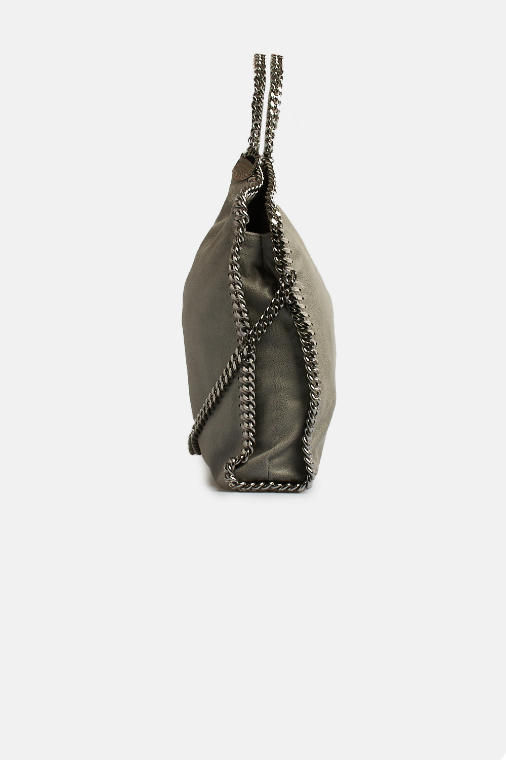 Stella McCartney Falabella foldable tote bag, crafted from vegan Shaggy Deer garnet fabric, silver Falabella chain detailing the edges, the bag is finished with a logo printed lining, slip pocket, snap button closure. It can be worn in two ways: folded over the shoulder or as a handbag