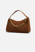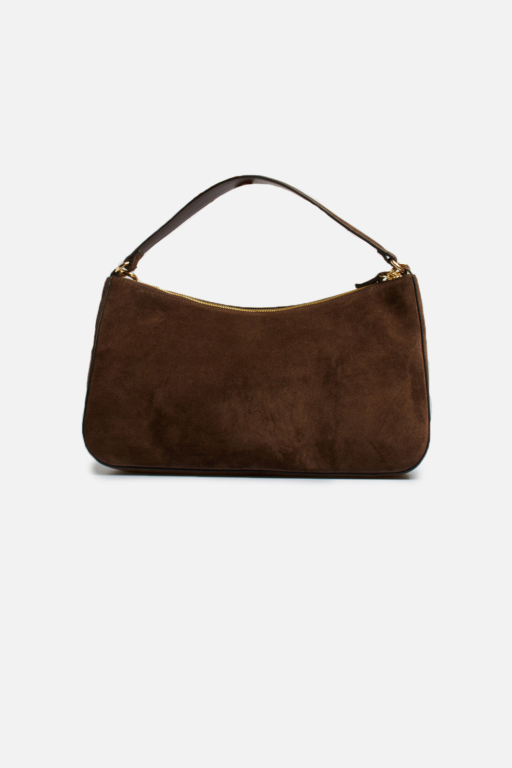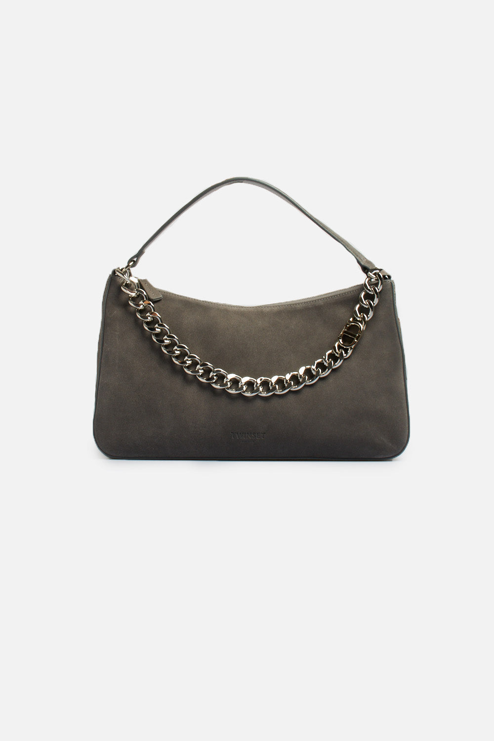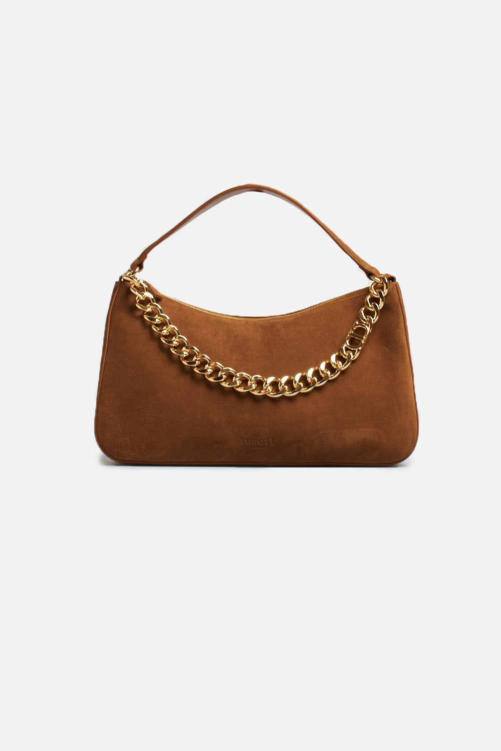 Twinset hobo bag made of suede, embossed logo, internal lining in cotton blend twill, two handles, one in leather and the other in gold metal chain with Oval T