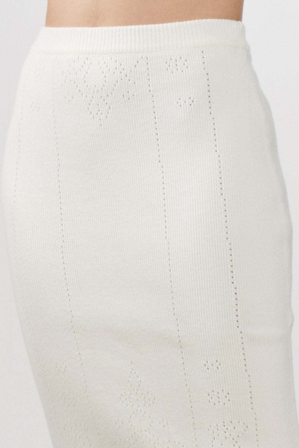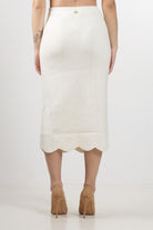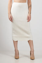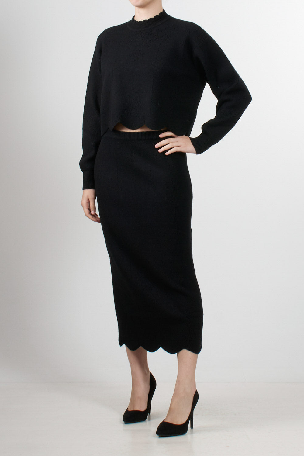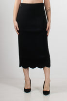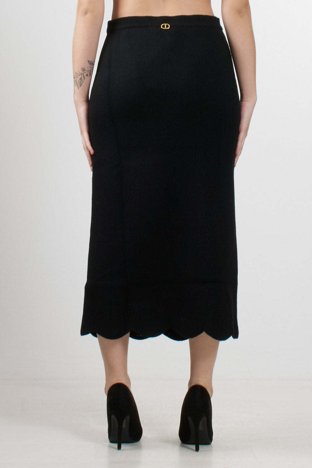 Fitted knit skirt by Twinset. Featuring compact seams and placed motifs, it features an elasticated ribbed waist and scalloped hem. Completed with an Oval T logo tag on the back.