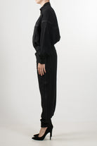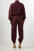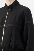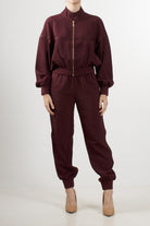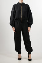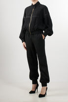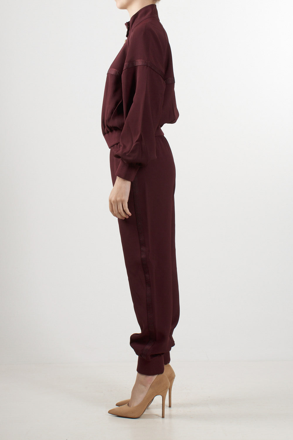 Twinset soft-fit jumpsuit, jacket with high collar, front fastening with gold zip and elasticated waist, trousers have a straight cut with logoed side bands and elasticated bottom