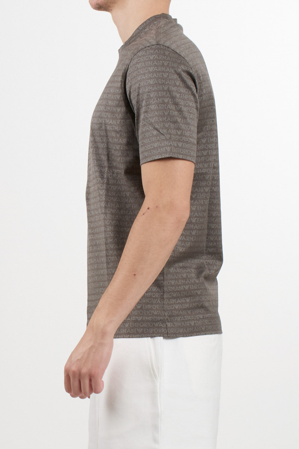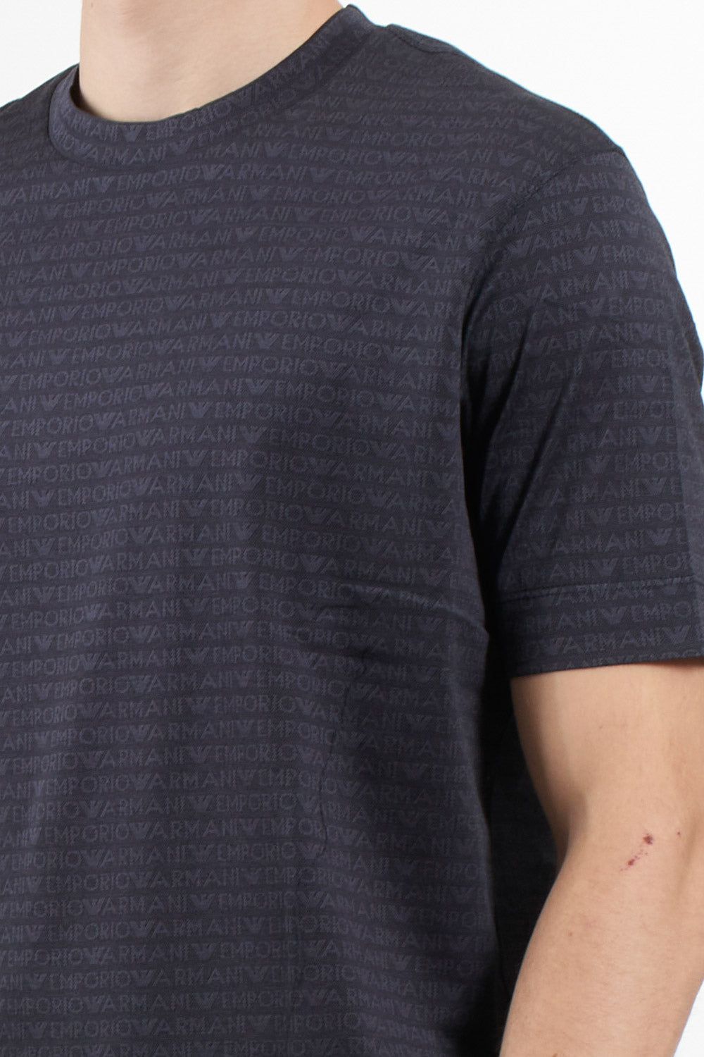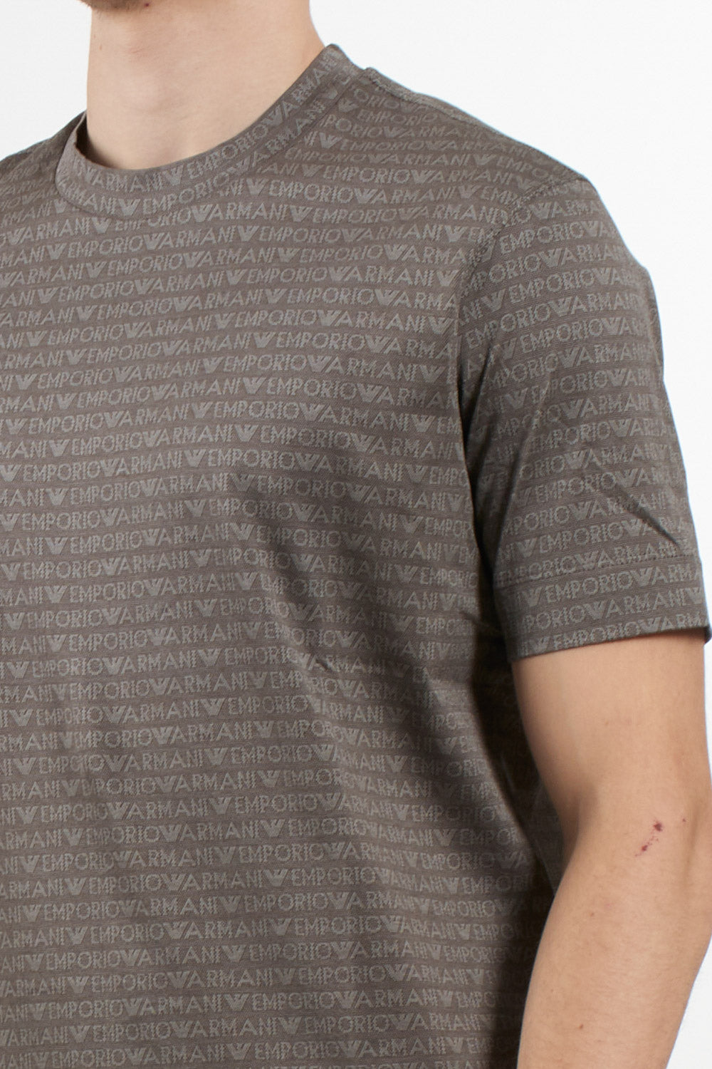 Emporio Armani crew neck T-shirt made of pure cotton jacquard jersey, all-over tone-on-tone lettering logo, short sleeves, regular fit