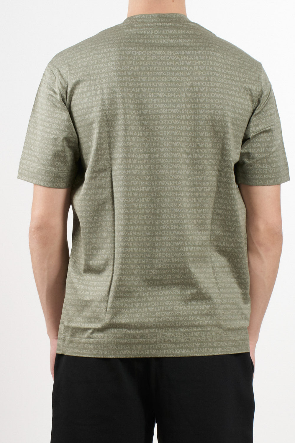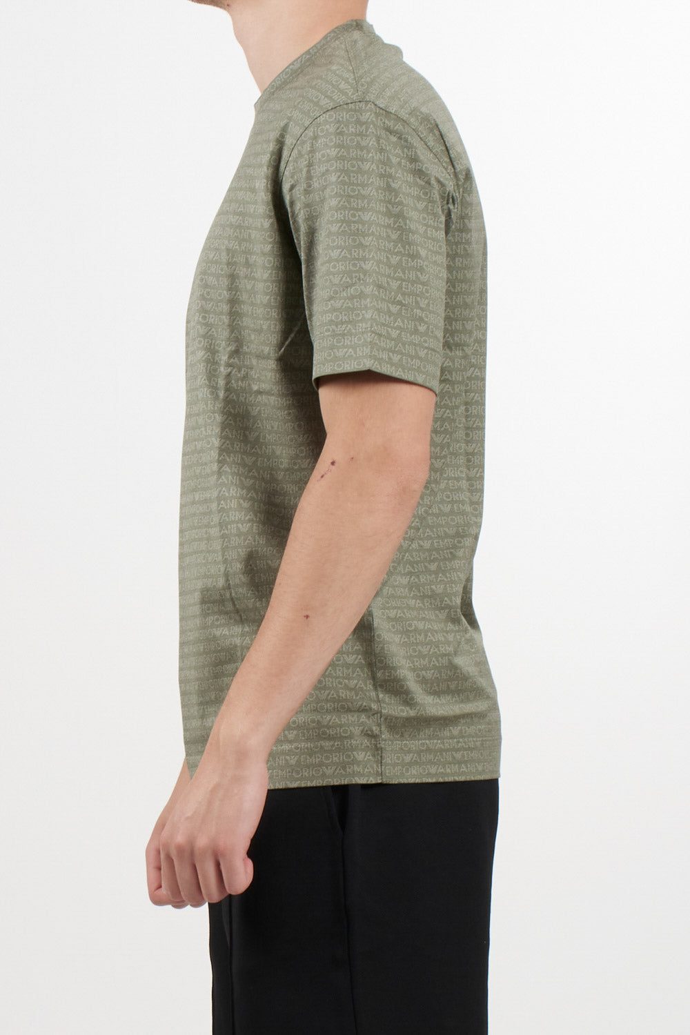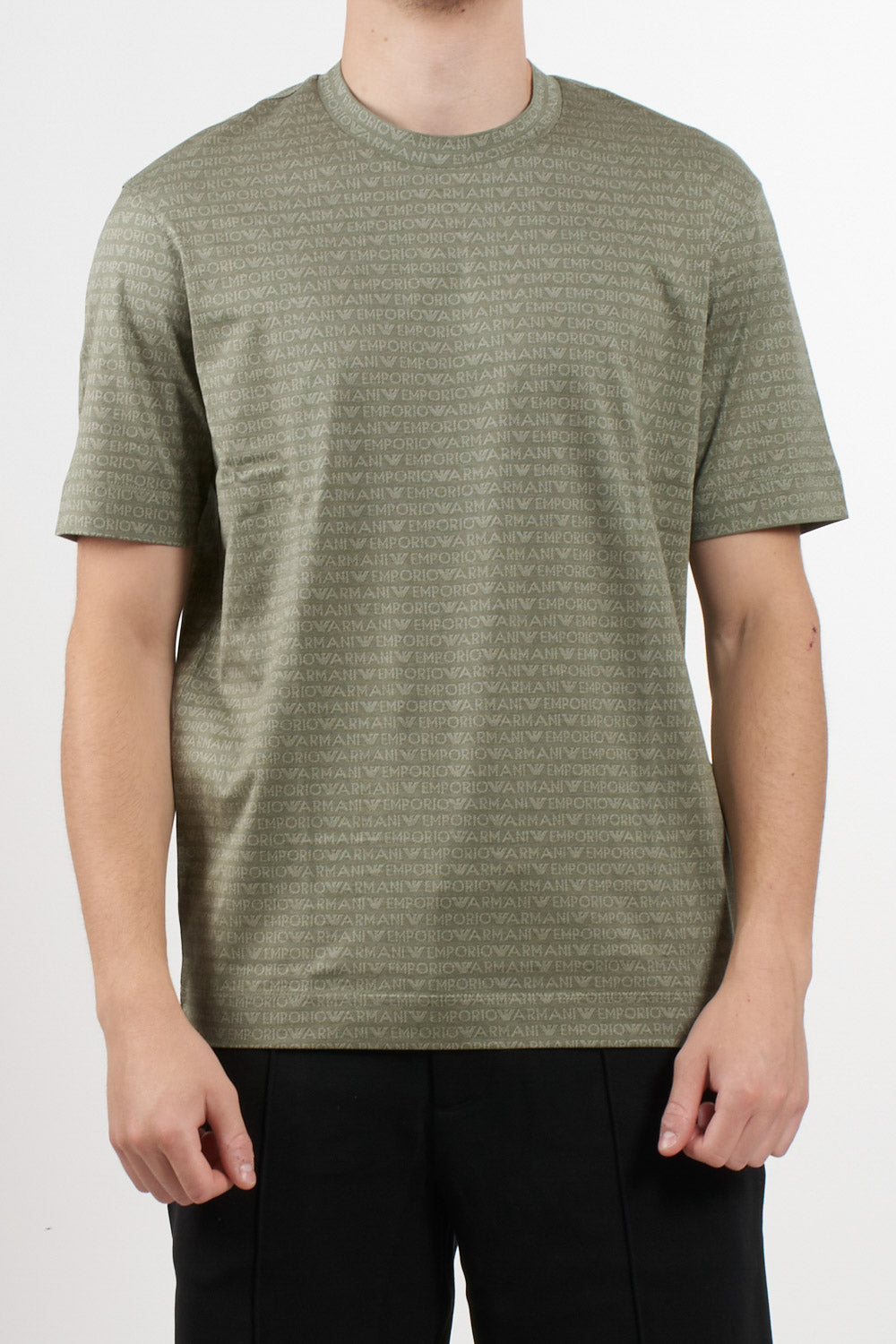 Emporio Armani crew neck T-shirt made of pure cotton jacquard jersey, all-over tone-on-tone lettering logo, short sleeves, regular fit