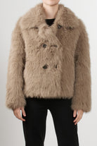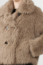 Soft-fit faux fur coat with a double-breasted front button closure. The faux fur fabric offers a soft and warm texture, while the stretch lining ensures comfort and a comfortable fit. A feminine and contemporary piece, perfect for adding a refined touch to your winter looks.