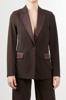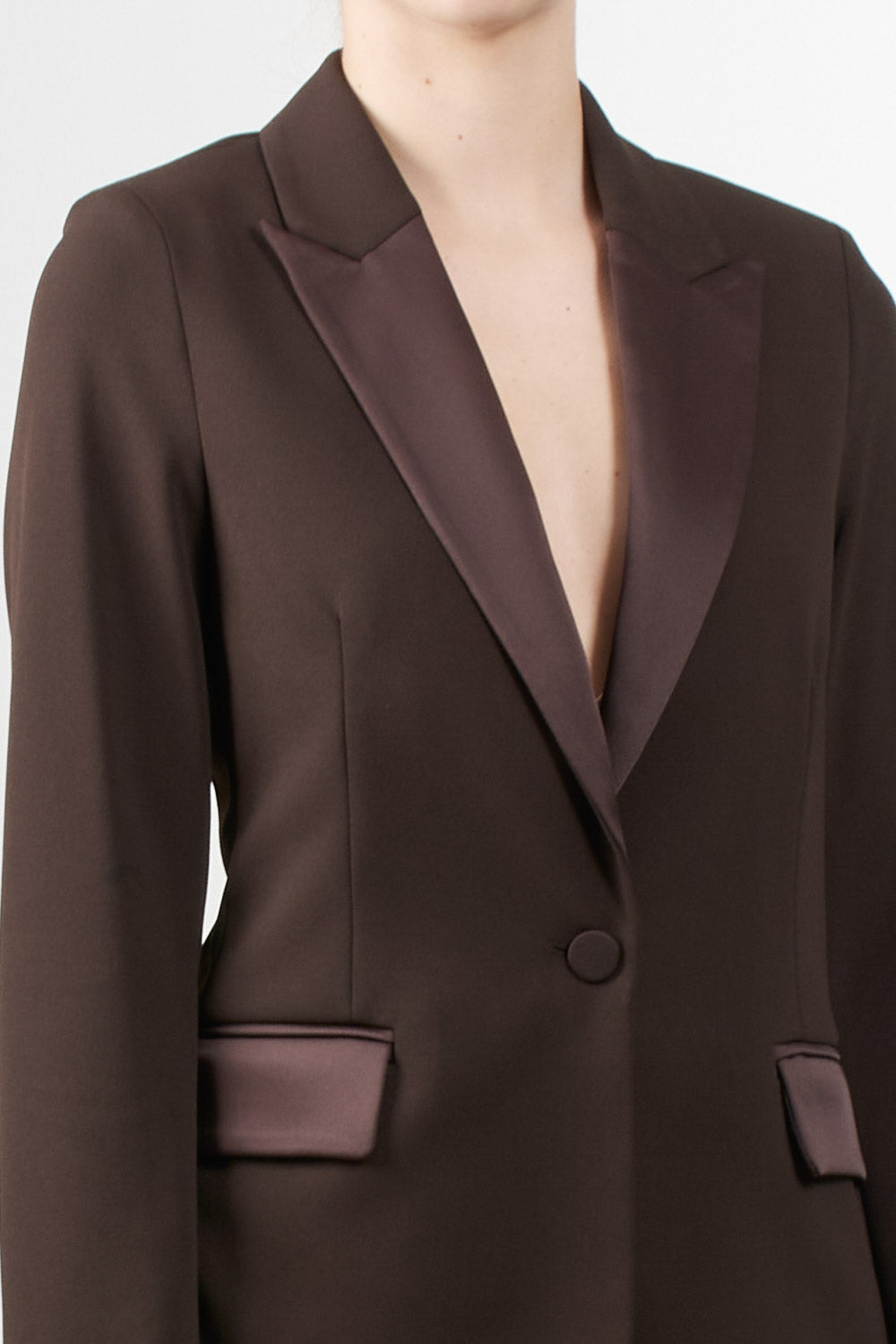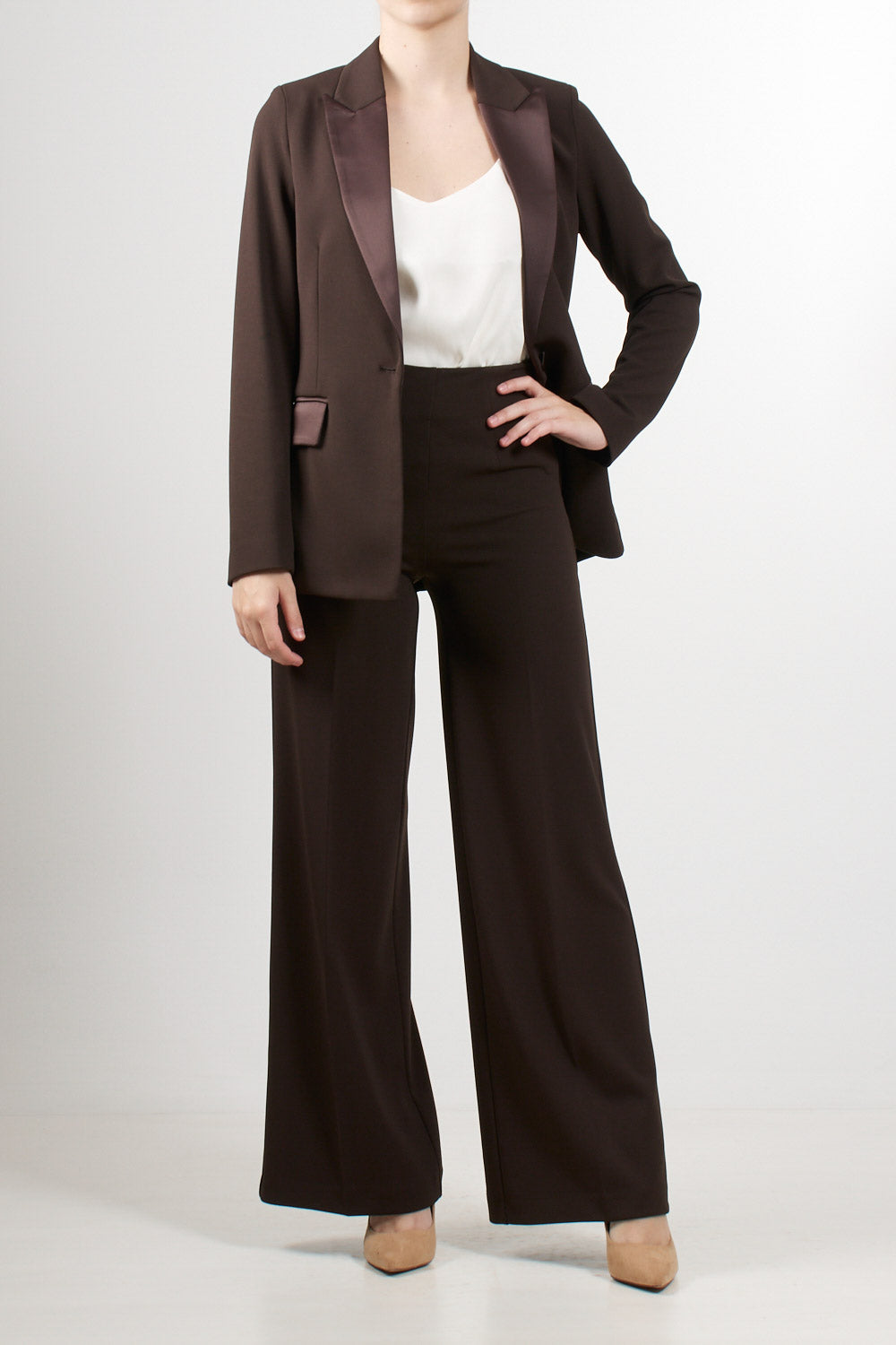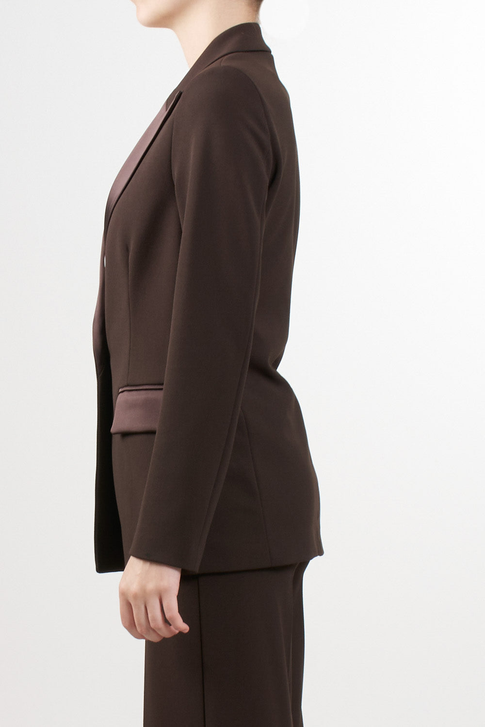 Vicolo single-breasted jacket with satin lapels and tone-on-tone covered button closure, flap pockets