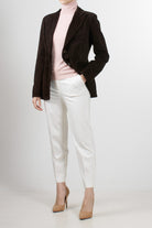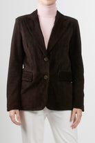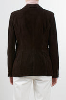 Vicolo single-breasted jacket in genuine leather with a tailored fit, featuring notched lapels and a two-button front closure. The style features flap pockets and a slightly fitted silhouette, flattering the figure while maintaining timeless elegance. The soft, natural texture of the leather lends the garment a refined and versatile look, ideal for sophisticated or casual chic looks.