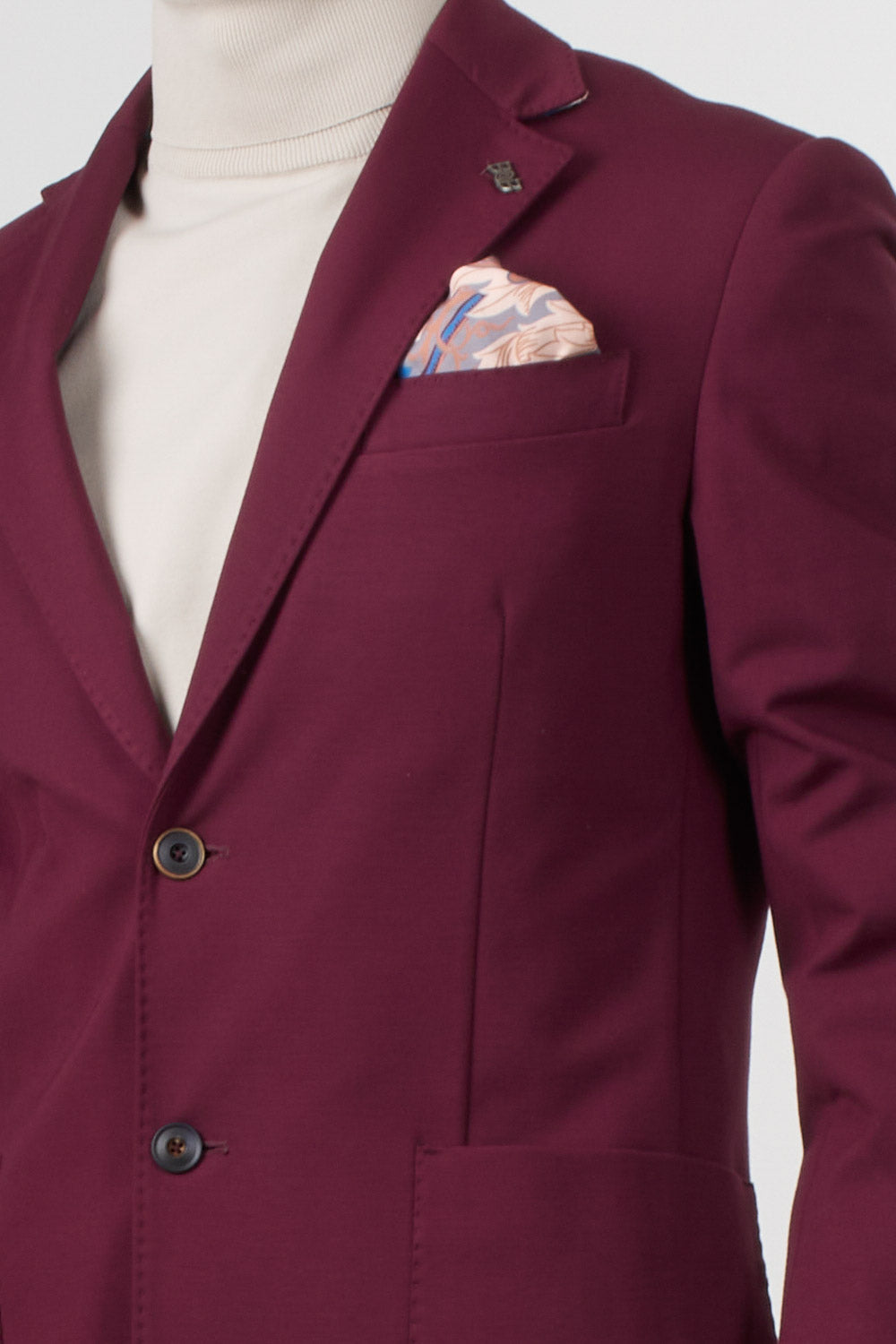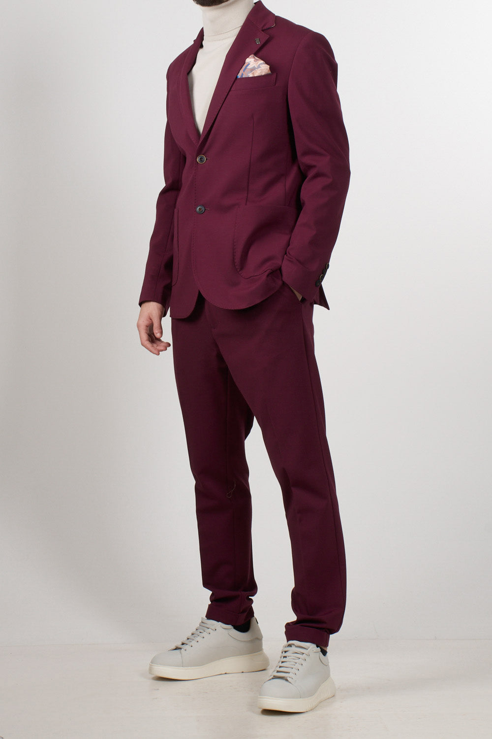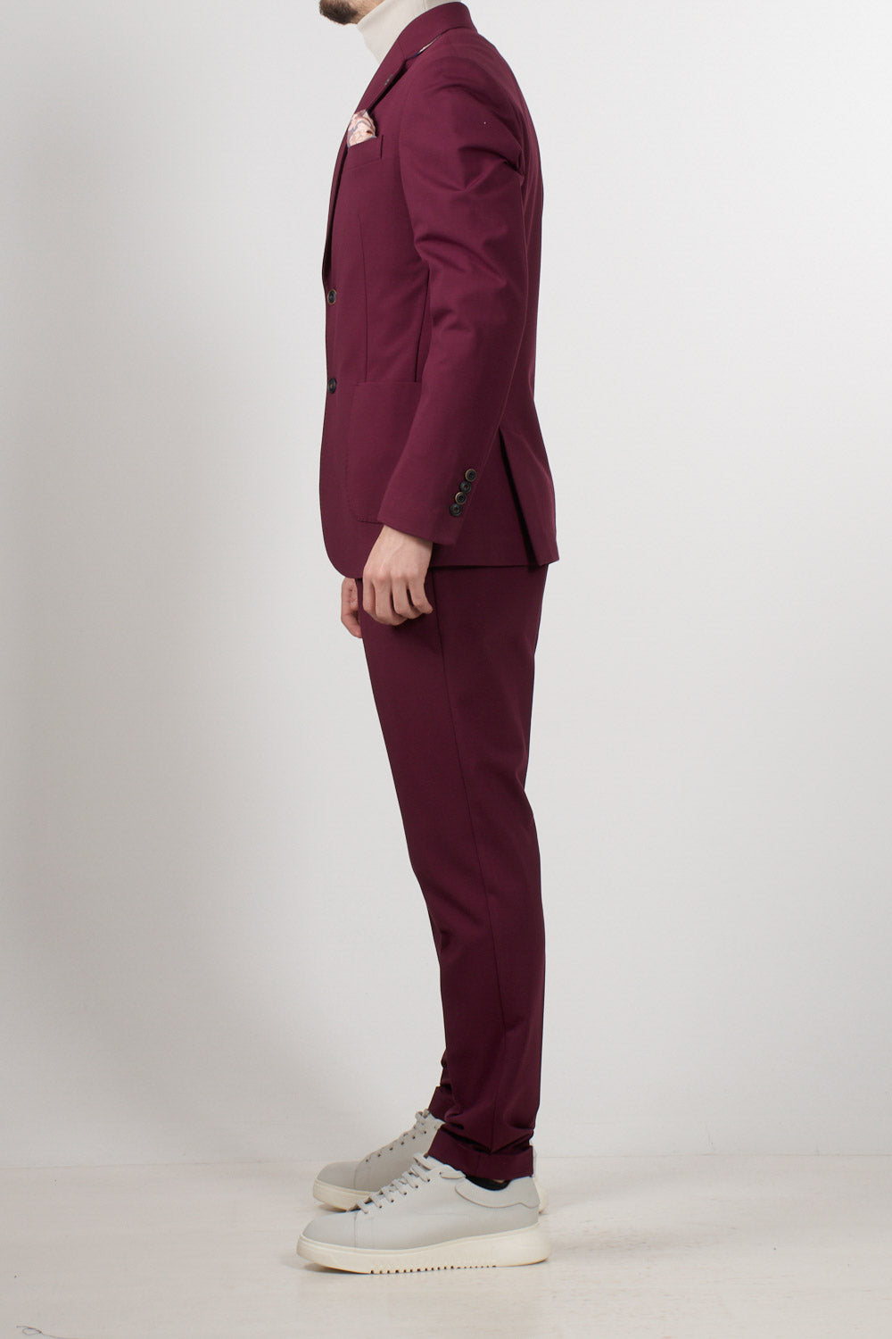 Single-breasted suit by Bob Company, the jacket features a two-button closure, patch pockets, a breast pocket with a decorative handkerchief and classic lapels.