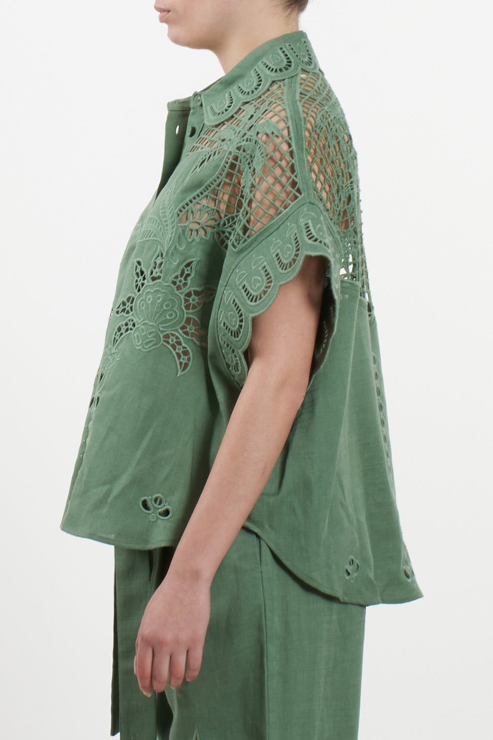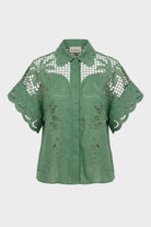 Linen and Lyocell Blend Shirt with Cut-out Embroidery – Amosa