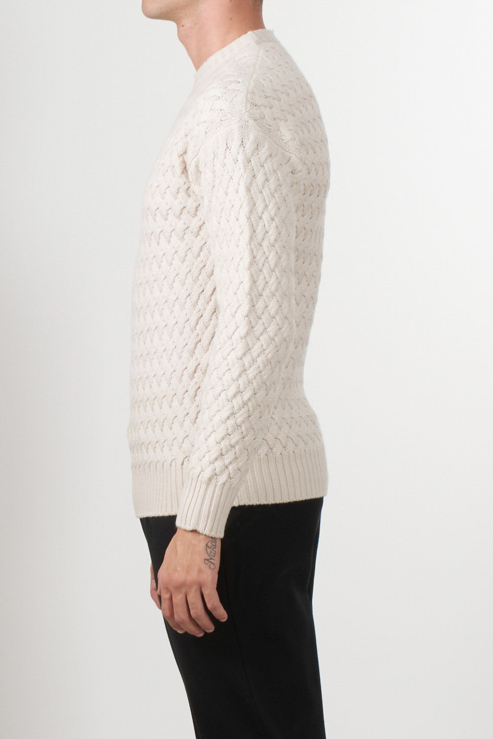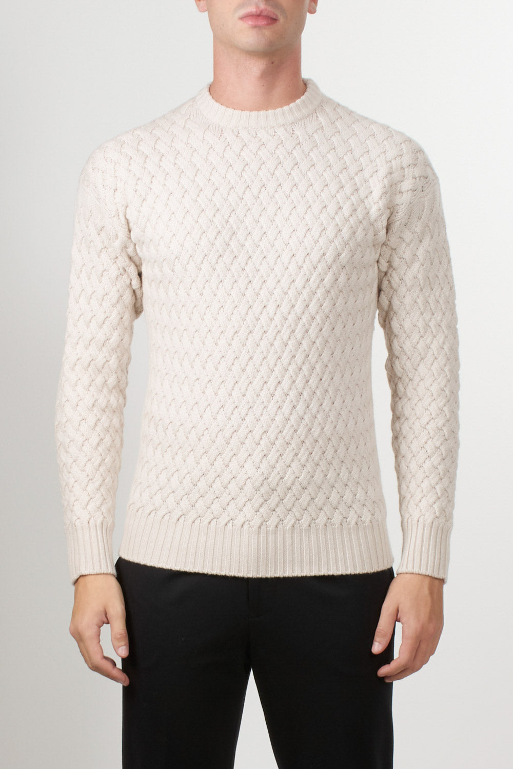 Alpha Studio sweater crafted from pure, extra-fine merino wool, featuring a three-dimensional woven design that adds texture and character. Featuring a crew neck, ribbed edges at the hem and cuffs for a comfortable fit and an elegant finish. Ideal for refined casual looks during the cold season.