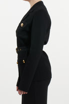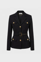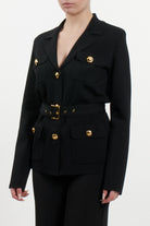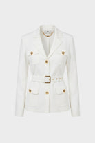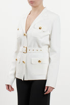 This Elisabetta Franchi jacket is made from a fine technical knit that combines structure and comfort. The design recalls the timeless "safari" style, reinterpreted in an urban and sophisticated key for the contemporary woman. The silhouette is defined by meticulous construction with four patch pockets and enriched by metallic details that give the garment a luxurious allure. Thanks to the coordinated belt, the jacket allows the waist to be shaped, offering a slim and impeccable fit.