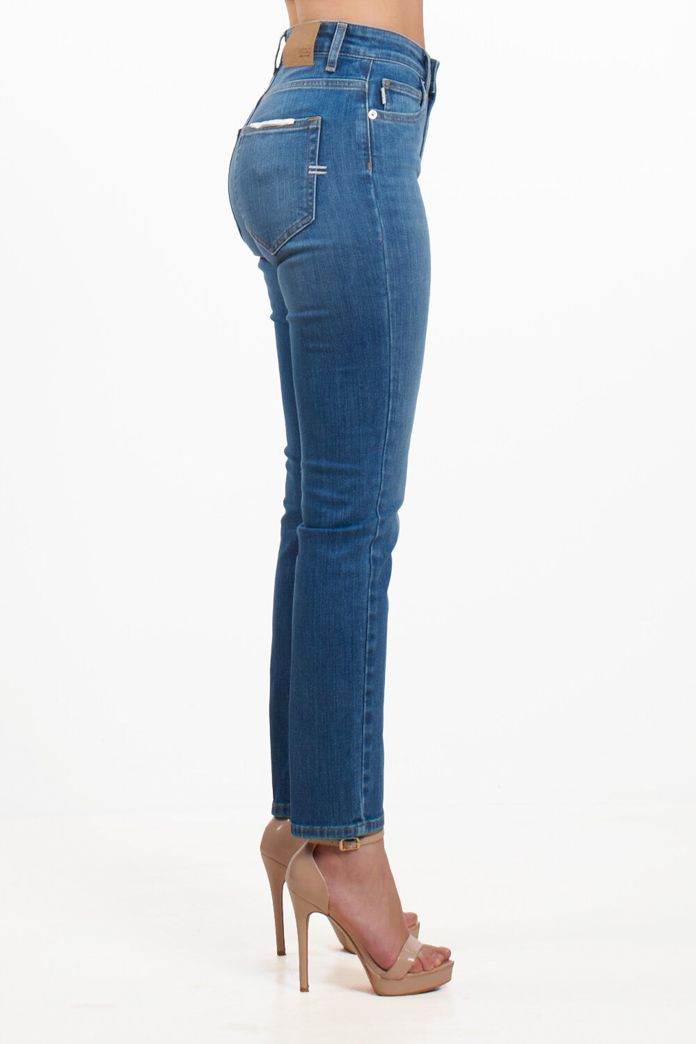 These Vicolo jeans interpret the classic slim cut with a modern and versatile aesthetic. The Daisy model features a clean line that naturally follows the figure, thanks to its slightly stretchy cotton composition that ensures comfort and freedom of movement. The medium denim wash with slight fading makes this garment a fundamental pillar of any everyday wardrobe, perfect for pairing with both sneakers and more elegant footwear.