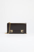 Elisabetta Franchi wallet with a refined design, crafted from synthetic material with a leather-effect finish. The model is embellished with gold-tone metal details featuring the logo, adding a bright and distinctive touch to the accessory. Removable shoulder strap.