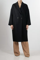 Vicolo's long double-breasted coat is crafted from a wool blend. It features notched lapels, a front button closure, and side welt pockets. Its relaxed fit and understated style make it perfect for the cold season and completes elegant or everyday looks.