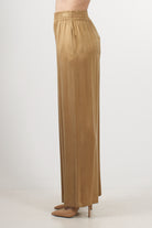 Motel palazzo trousers with an elasticated waist and side pockets. The loose fit and flowing fabric make them ideal for sophisticated and comfortable looks. Perfect for pairing with the matching jacket.