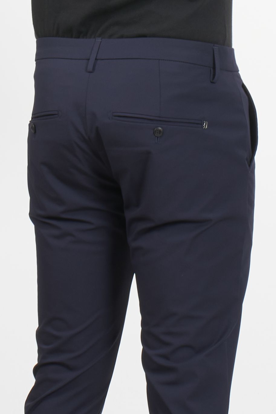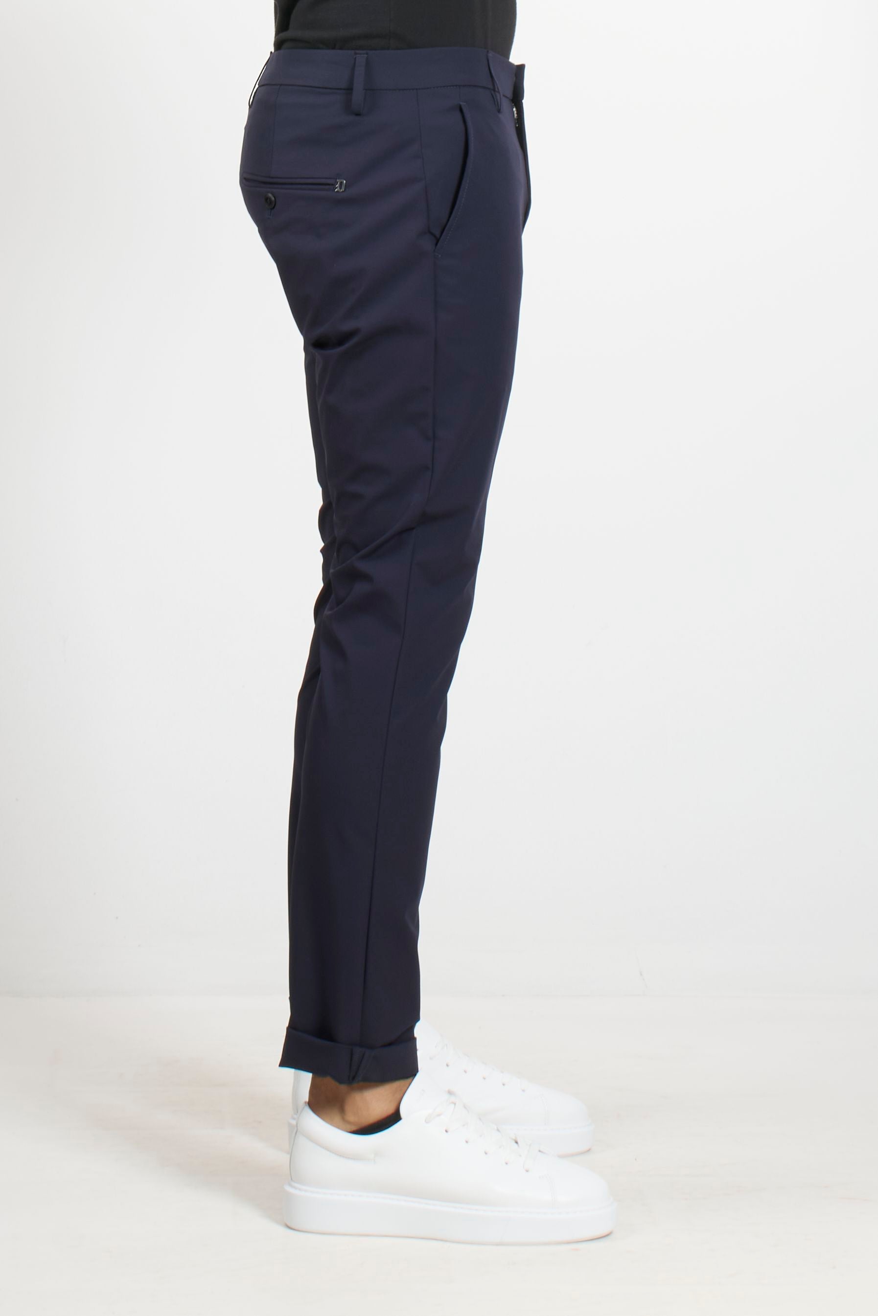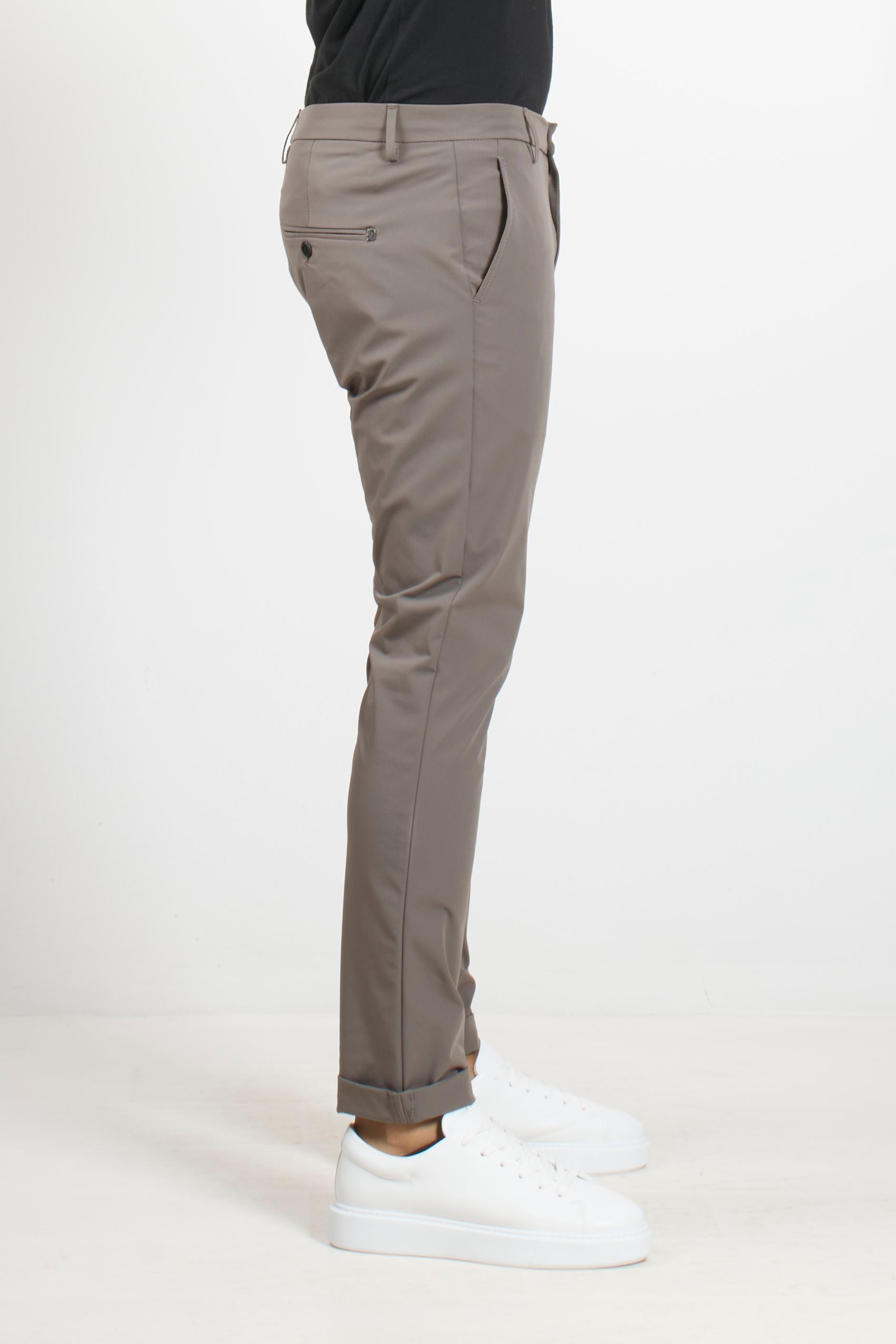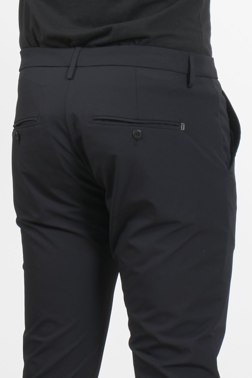 These Dondup trousers combine the comfort of technical jersey with a clean, tailored fit. The Gaubert model stands out for its side welt pockets and straight leg, offering a minimalist, crease-resistant silhouette. A versatile piece ideal for those seeking a dynamic yet impeccable look.