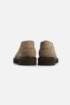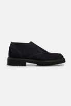 Desert boot without laces in suede Minimalist design and bold character. Clean lines and a rubber lug sole for style and personality. Blake construction for durability and comfort. Perfect for casual and refined looks.