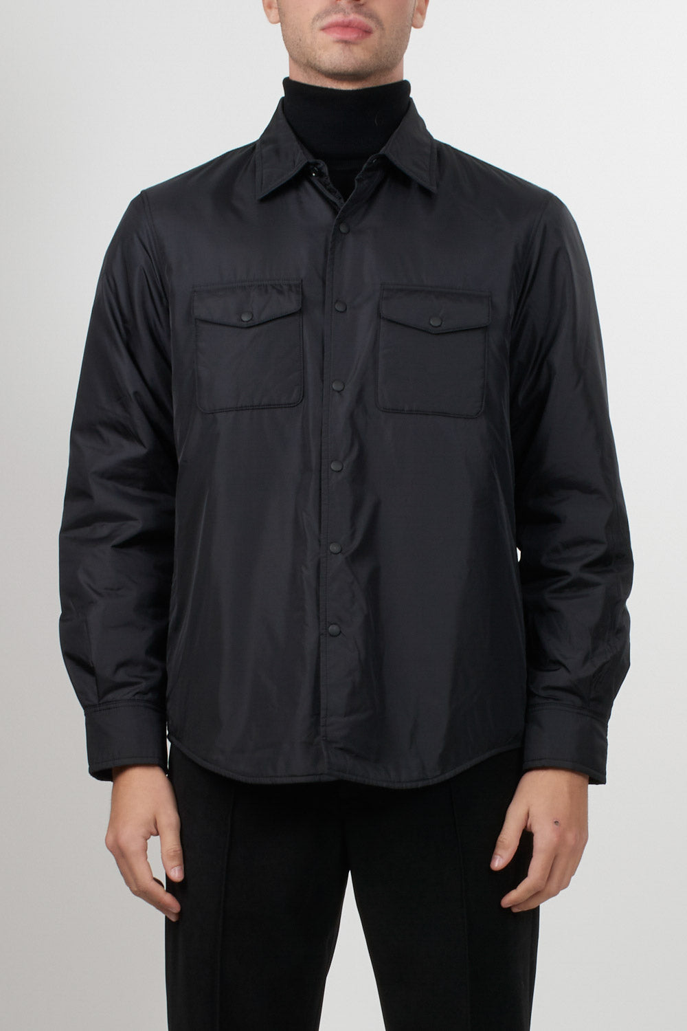 Camicia a maniche lunghe è realizzata in nylon leggero, foderata nello stesso tessuto e imbottita con ovatta Thermore compatta che assicura comfort e protezione, chiusura frontale con bottoni a pressione, due tasche applicate sul petto con patta e bottone e da due tasche laterali.