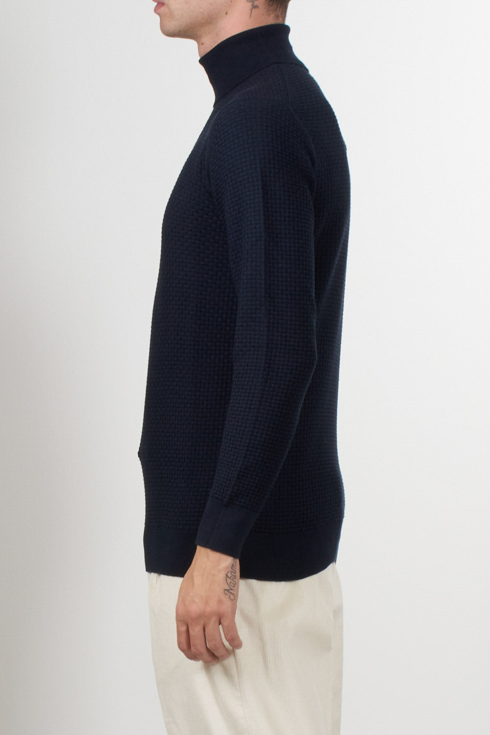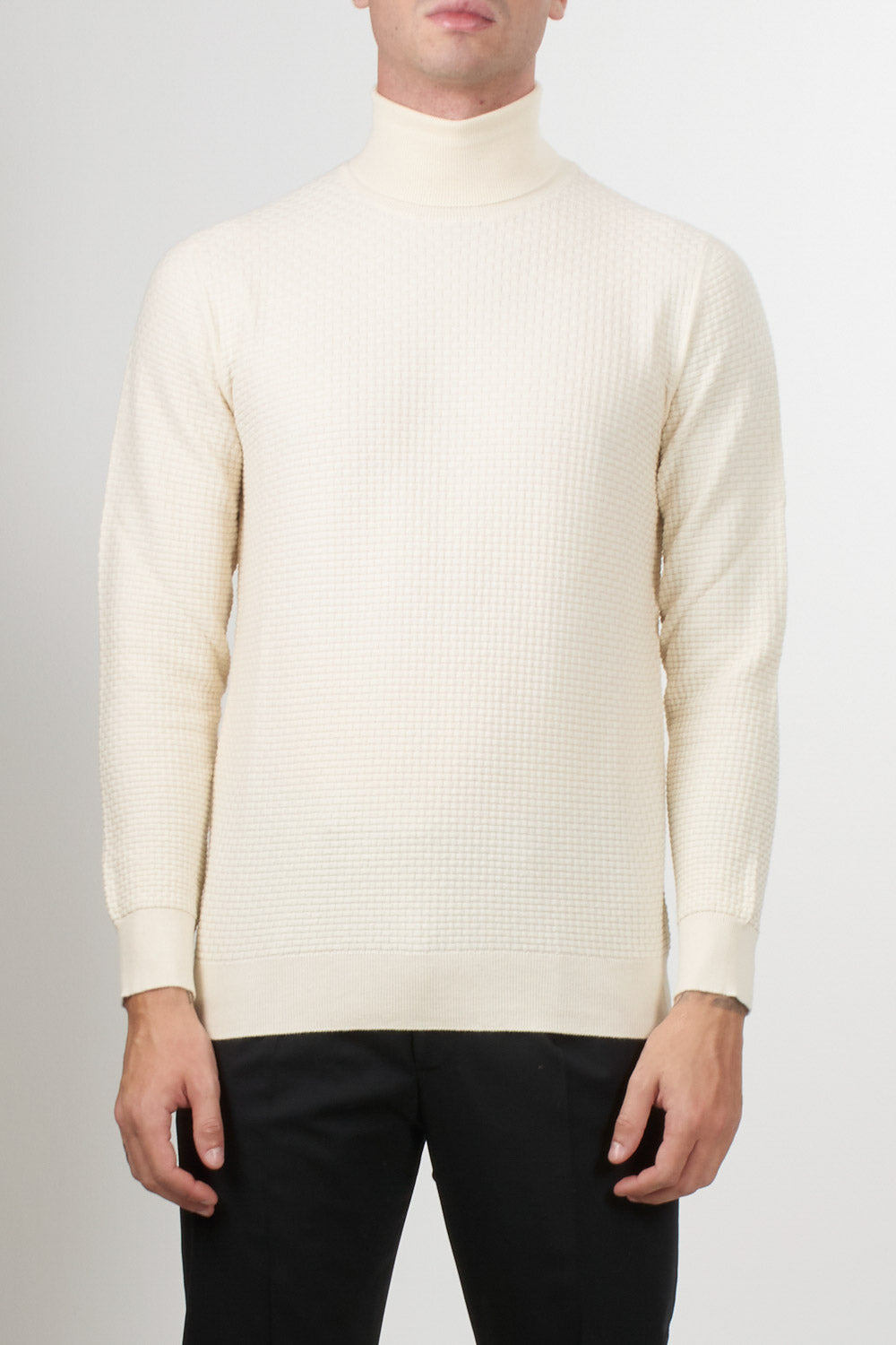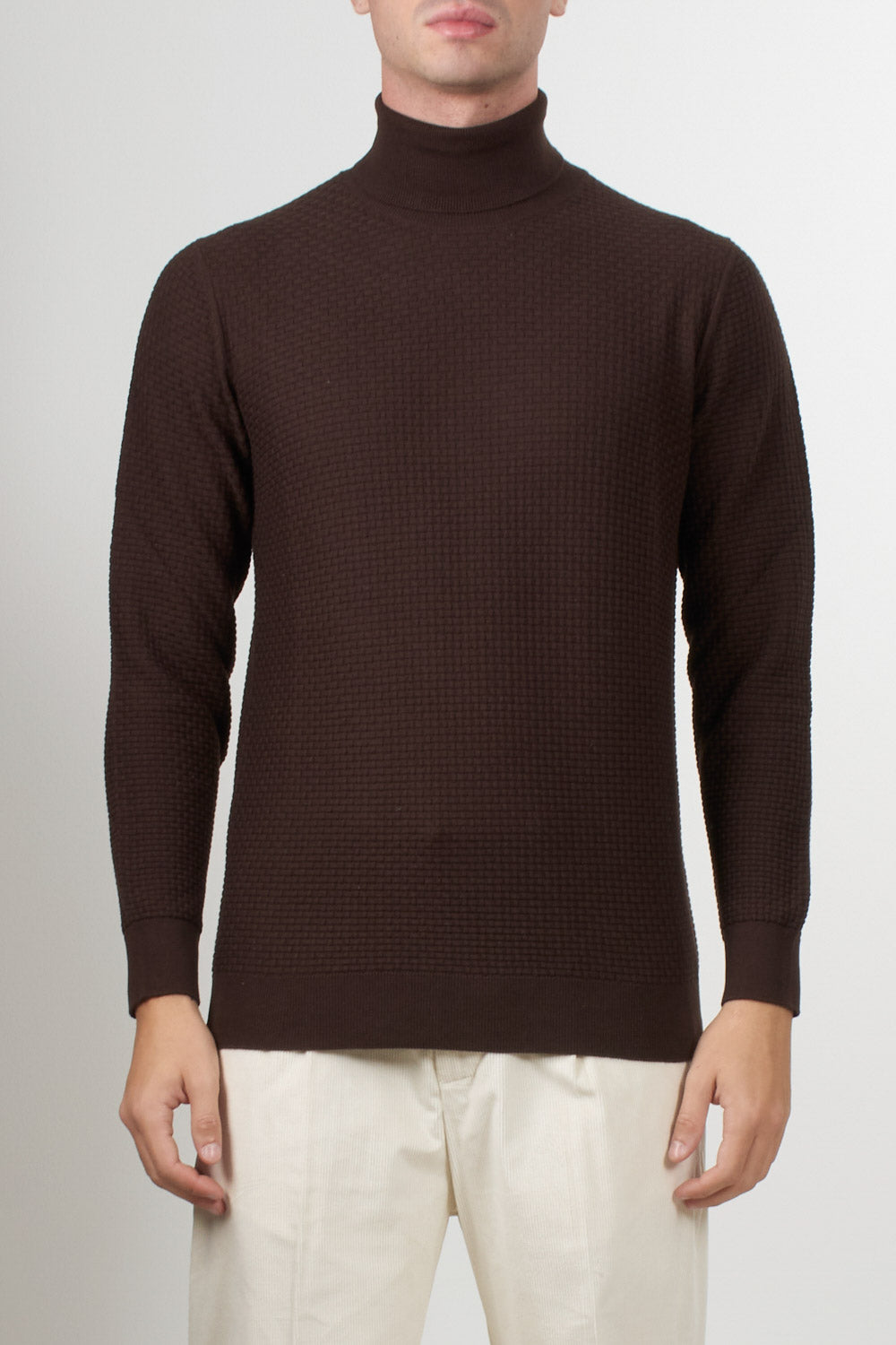 Dolcevita a maniche lunghe Masq, realizzato con una lavorazione a micro-trama che conferisce profondità e carattere al capo. Il design minimal e raffinato è valorizzato dal collo alto a coste e dalle finiture elasticizzate su polsini e fondo, per una vestibilità comoda e pulita. Perfetto da indossare sotto giacche o cappotti per un look sofisticato e contemporaneo, oppure da solo per uno stile casual di classe.