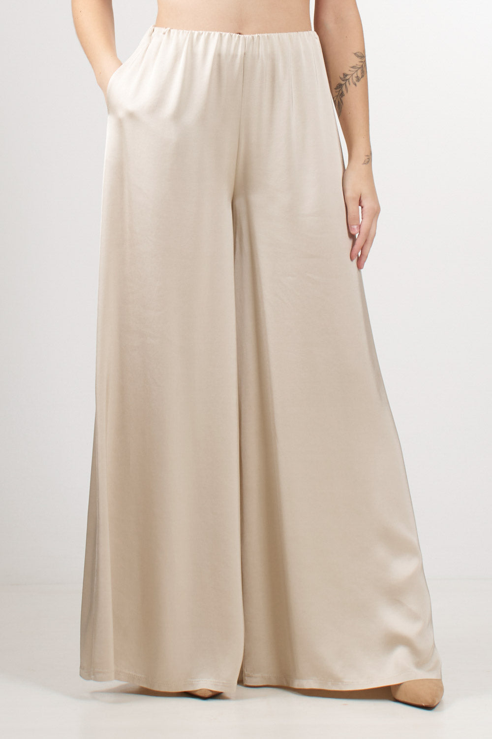 Pantalone Motel ampio a palazzo realizzato in viscosa fluida, con vita elasticizzata e tasche laterali.
