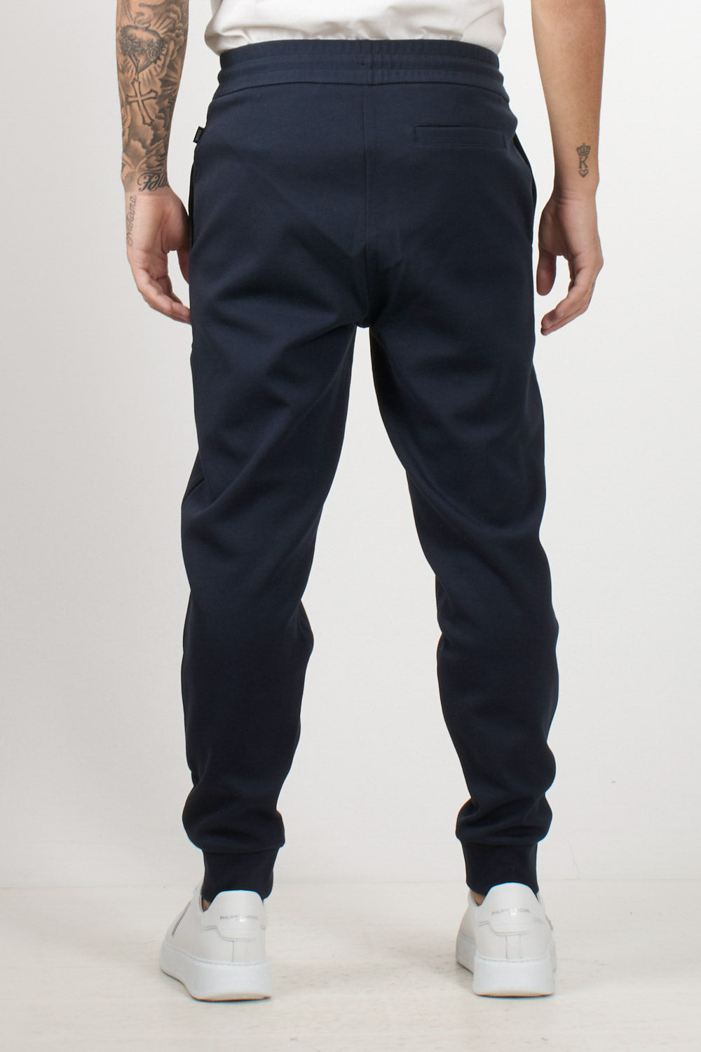 Pantalone tuta di Boss con elastico in vita, dettaglio di micrologo sul fronte, tache laterali, polsini sul fondo, vestibilità comoda