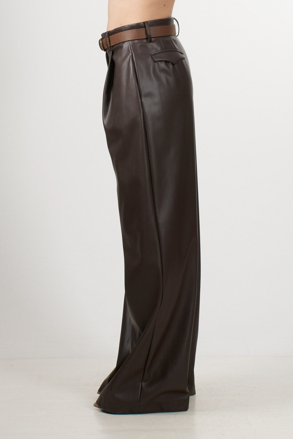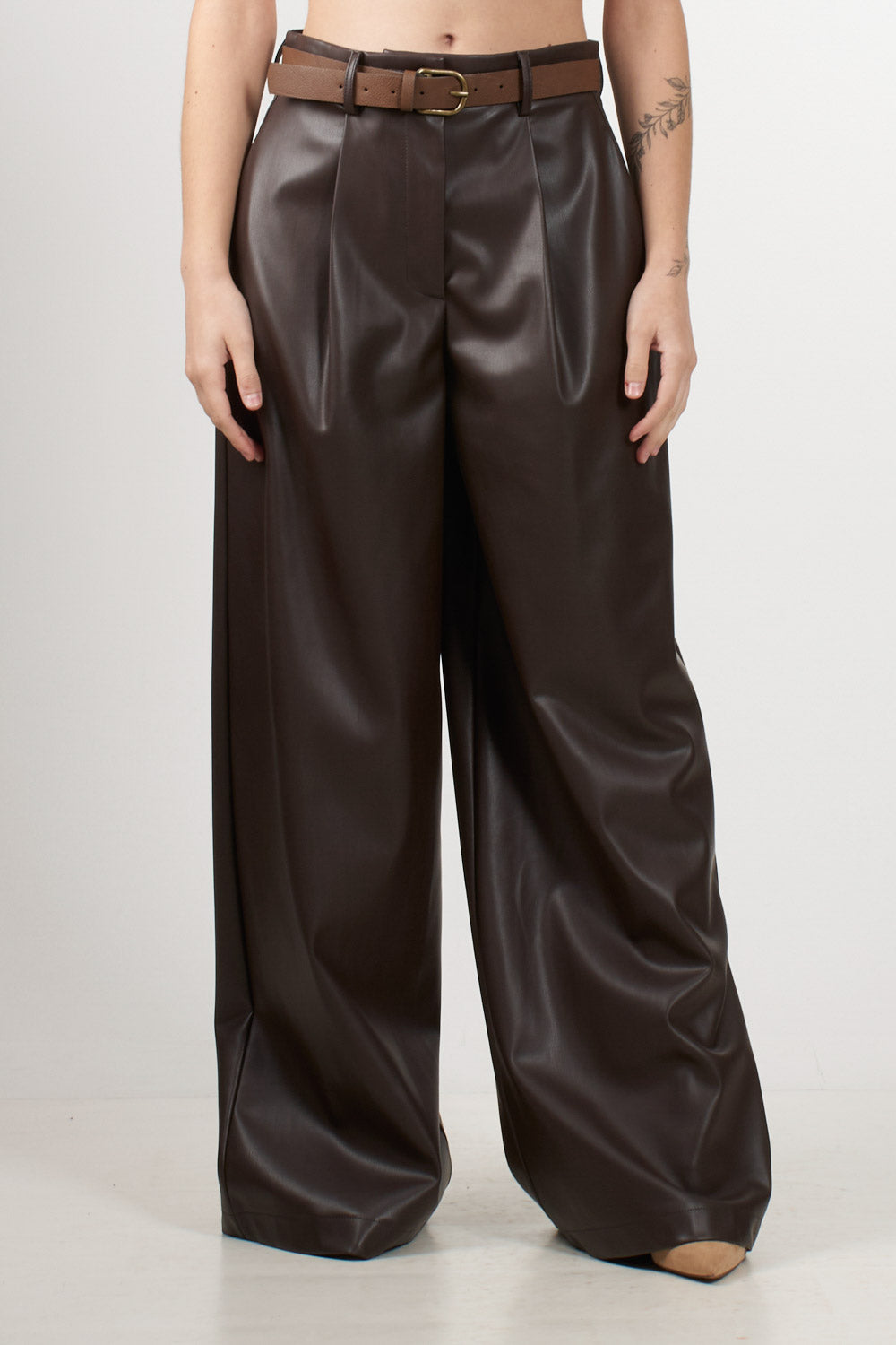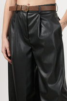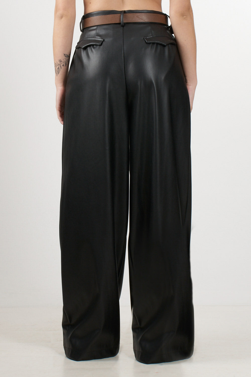 Questi pantaloni firmati Tensione In si distinguono per il loro design contemporaneo e la texture effetto pelle che dona un tocco deciso e sofisticato al look. La silhouette ampia e fluida, valorizzata dalle pinces frontali, offre una vestibilità comoda e moderna, perfetta per creare outfit dal carattere urbano o elegante.