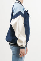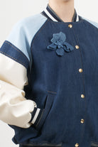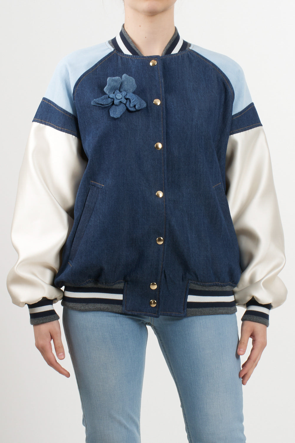 Un mix riuscito di femminilità e stile urbano. Questo bomber gioca con i contrasti: il corpo in denim dona un tocco grintoso, mentre le maniche in raso effetto seta aggiungono luminosità e raffinatezza. Il dettaglio floreale applicato sul petto rende il capo distintivo e originale, mentre il taglio morbido e le finiture a costine donano comfort e struttura. Perfetto da indossare sopra look casual o per dare carattere a un outfit basic.
