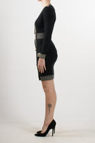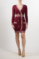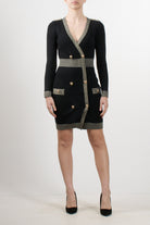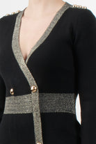Abito corto in maglia di No Secrets con dettaglio di bottoni in metallo oro sul fronte e sulle spalle, mini spacco sul fronte, vestibilità aderente