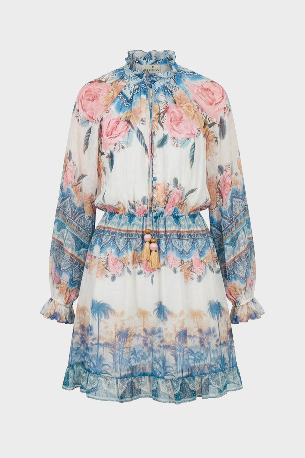 Abito di Amosa realizzato in un morbido mix di viscosa e nylon, caratterizzato da una lavorazione a costine che segue armoniosamente le linee del corpo. La struttura del capo presenta un elegante scollo a V con design a incrocio sul davanti, che crea un delicato drappeggio in vita. Le maniche lunghe e la gonna fluida che scende fino alla caviglia rendono il modello versatile e raffinato, perfetto per la stagione primaverile grazie alla luminosa tonalità azzurro pastello.