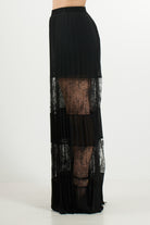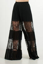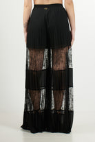 Pantalone Palazzo con Inserti in Pizzo e Plissé