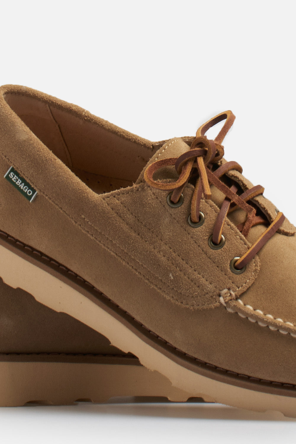 Mocassino artigianale dal design iconico, ispirato a un modello d’archivio Sebago, pensato per la vita all’aria aperta. Realizzato in morbida pelle scamosciata ingrassata con olii speciali che la rendono fresca e vellutata al tatto, presenta costruzione hand-sewn con moc toe a cucitura a mano e fodera interna in pelle per una calzata naturale e traspirante. La suola in EVA ultraleggera con logo Sebago assicura comfort, assorbimento degli urti e ottima trazione. Rifinito con occhielli metallici e cuciture a vista per un look autentico e senza tempo.