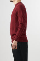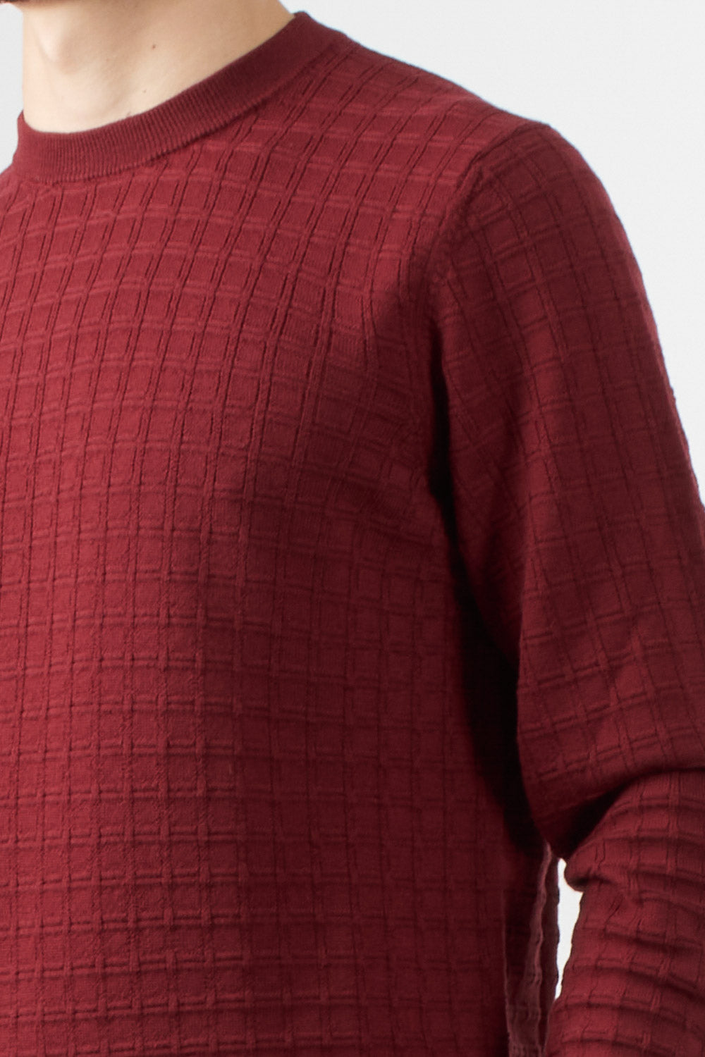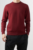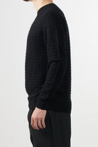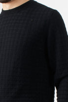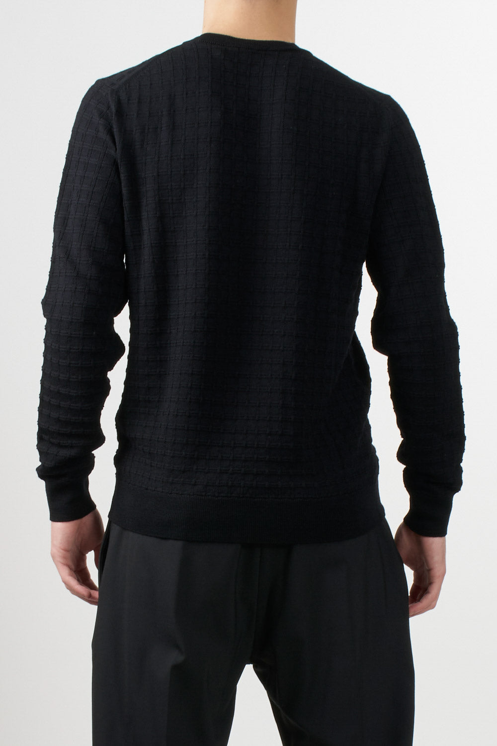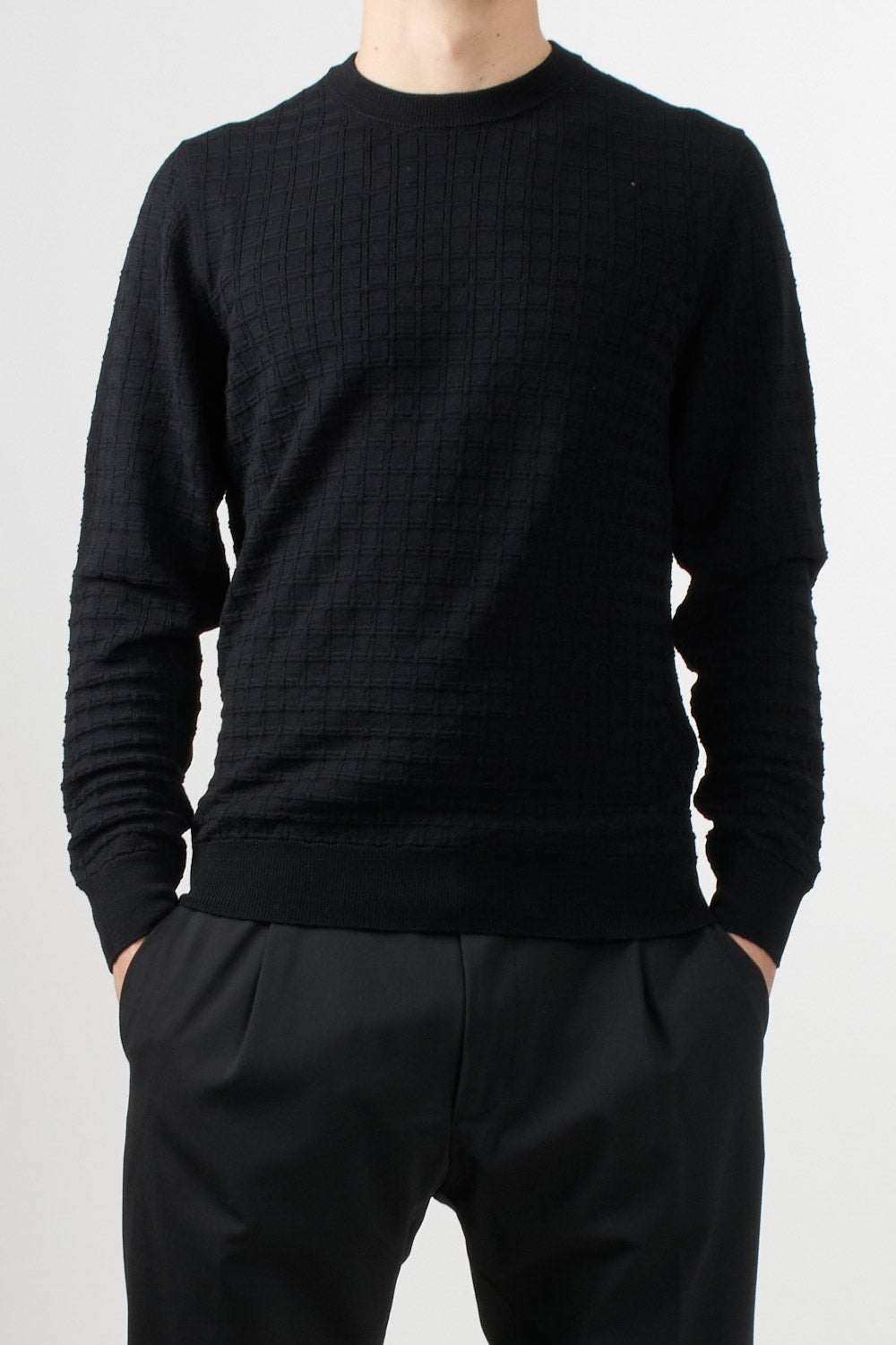 Maglia girocollo MASQ a maniche lunghe in fine lana, lavorazione geometrica a rilievo che aggiunge texture e profondità al design, fit regolare, rifiniture a costine su colletto, polsi e fondo