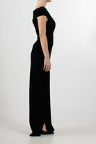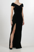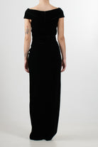 Abito elegante in velluto di No Secrets con scollo incrociato che lascia le spalle scoperte. La linea lunga e scivolata è arricchita da uno spacco frontale che dona movimento e slancia la figura. Un capo raffinato, ideale per eventi serali e cerimonie.