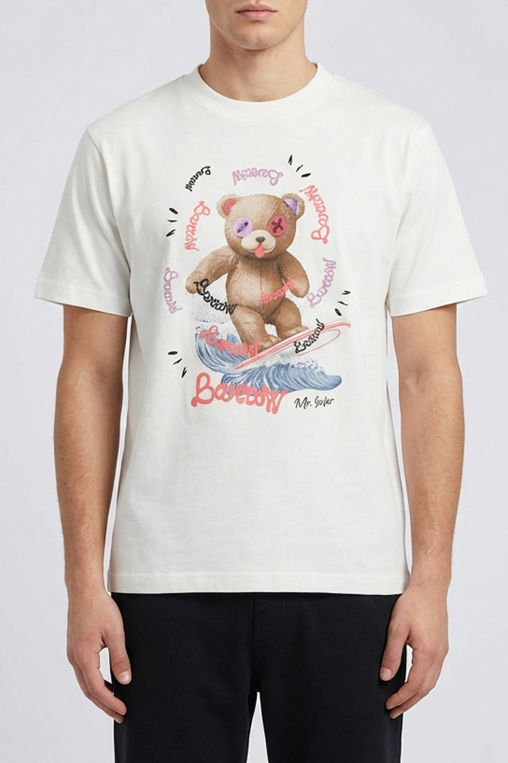 Caratteristiche: Stampa frontale grafica con orsetto su tavola da surf, logo Barrow in corsivo.