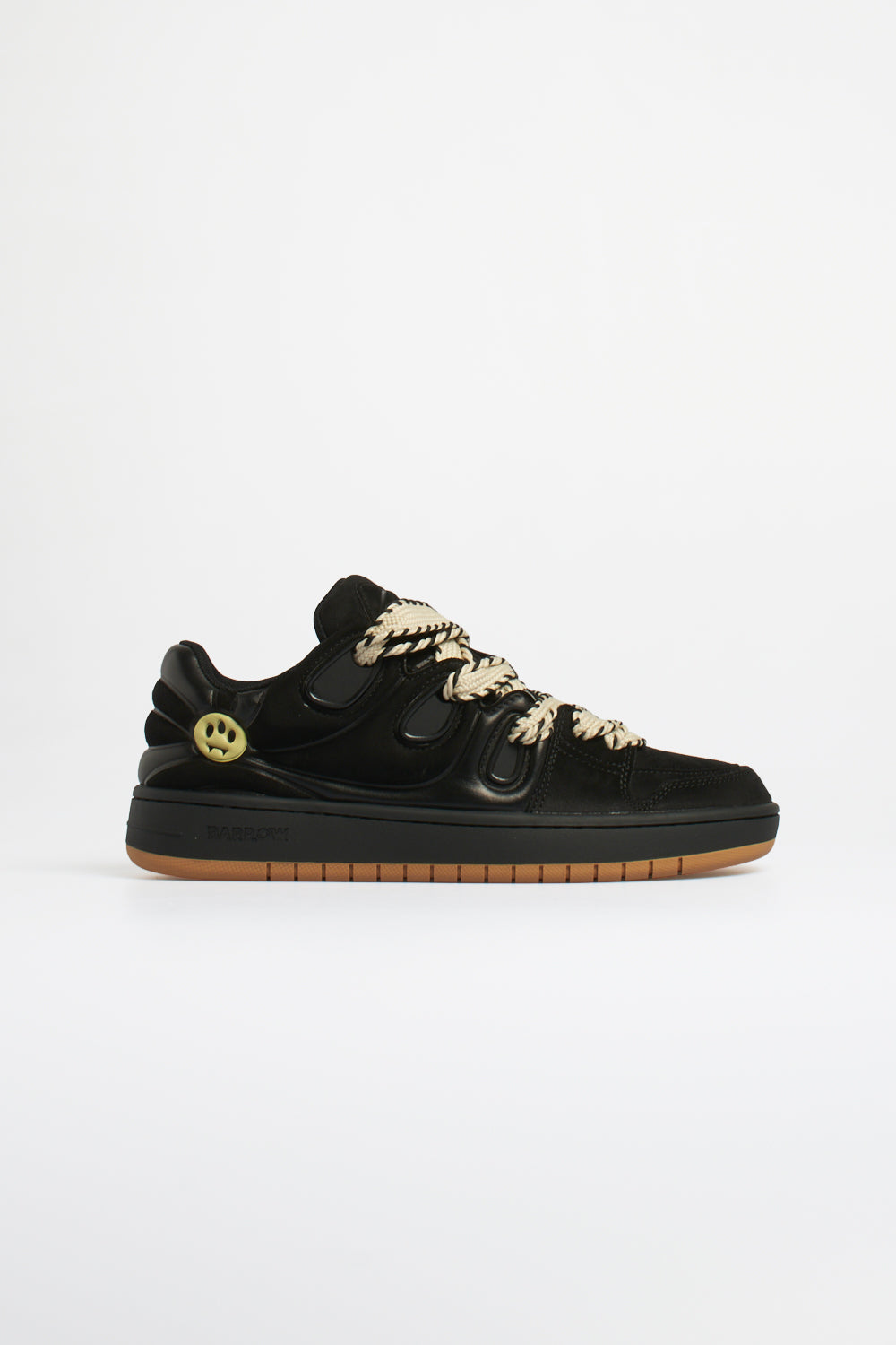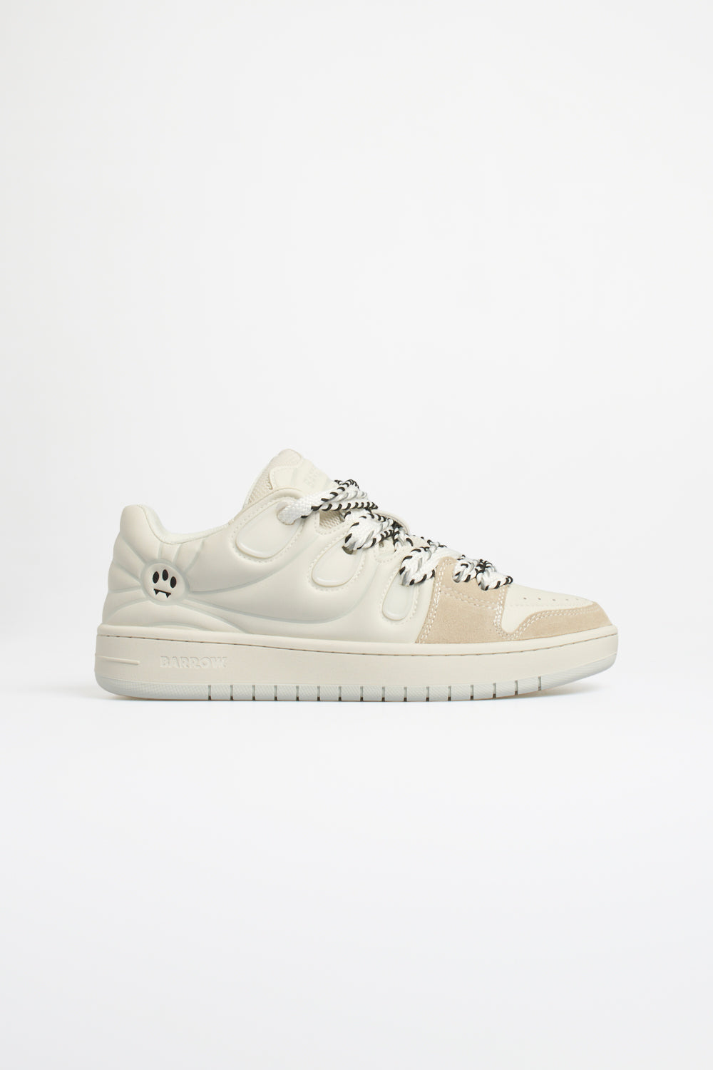 Il tallone è arricchito dall’iconico smile Barrow in versione metallica, elemento distintivo del marchio. La suola in gomma con fondo color miele garantisce stabilità e grip, completando una sneaker pensata per un look urbano e dinamico.